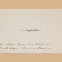 I - GEN | 945 : V.2 | BITTANTI BATTISTI | 2Ernesta Battisti Bittanti : Brescia 1871-Trento 1957 : in memoria : scritti suoi ed a lei dedicati. - [S.l. : s.n.], 1962 (Trento : Arti grafiche Saturnia). - 313 p. : ill. ; 25 cmBiglietto da visita “I compilatori, Livia Battisti, Camillo Battisti”. -