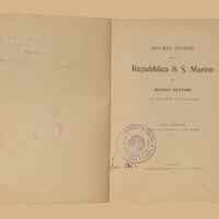 I - GEN | 945.49 | FATRicordi storici della Repubblica di S. Marino / di Marino Fattori. - 6. ed., riveduta ed accresciuta, con note ed aggiunte. - Foligno : Tip. F. Campitelli, 1912. - 141 p., [1] c. di tav. : ritr. ; 18 cm.Nell'occhietto dedica ms. “All'on. Emilio Lussu, quale ricordo della repubblica di S. Marino, D. Enrico Biordi Villasalto, 23.VIII.926”. Cartolina da San Marino, dat. 8.X.926, “Distintissimi saluti, D. E. Biordi". -