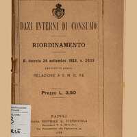 I - GEN | 343.04 | ITA | 1Dazi interni di consumo : riordinamento : r. decreto 24 settembre 1923, n. 2030 ; preceduto dalla Relazione a S.M. il Re. - Napoli : E. Pietrocola, 1924. - 47 p. ; 16 cm. - (Biblioteca legale)Avvisi di citazione per testimonio del Tribunale di Cagliari, dat. 23 gennaio 1925 e 14 febbraio 1925 per Giovanni Sole di Pirri per un processo di frode al dazio nella causa contro Melis Efisio in I3 VARIE 079. -