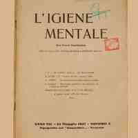 III - PER | 610 | IGIEL'igiene mentale : organo della Lega italiana di igiene e profilassi. Venezia : [s.n.], 1926–1935. Continuazione di La voce sanitaria.Posseduto: a. 6 (1926) n. 2, 4–6; a. 7 (1927), n. 3–4. Nella cop. dell'a. 7 (1927) n. 3, 4 ms. "Avv. Emilio Lussu" seguito dal visto del carcere di Buoncammino di Cagliari. -