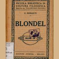 109 | PBCF | 19Blondel / Ernesto Bonaiuti. - Milano : Athena, 1926. - 86 p. ; 16 cm. - (Piccola biblioteca di coltura filosofica ; 19)Nel front. ms. “On. Emilio Lussu” seguito dal visto del carcere di Buoncammino di Cagliari. -