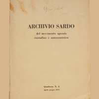 945.9 | ARCHArchivio sardo del movimento operaio contadino e autonomistico Cagliari : Istituto di studi storici della Facolta di magistero dell'Università, 1973–1998.Posseduto: 1973, quad. 1, 2. Nel quad. 2 sono inseriti alcuni fogli mss. con appunti relativi a “La rivoluzione liberale “ di Piero Gobetti. -