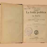I - GEN | 945 : I | ORILa lotta politica in Italia : origini della lotta attuale : 476-1887 / Alfredo Oriani. - 5. ed. / curata e riveduta sul manoscritto da A. Malavasi e G. Fumagalli. - Firenze : La Voce, 1921. - 3 v. ; 20 cm.Mezza legatura con dorso nero e piatti amaranto. Cartellino ds. sul dorso “Oriani I[-III]”. Nel front. del vol. ms. 1 “Humiles miricae. XXIIX-V.XXIII”. -