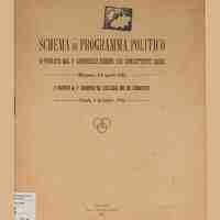 945.9 : VIII.4 | ANCSchema di programma politico approvato dal 3. congresso region. dei combattenti sardi (Macomer, 8-9 agosto 1920), e proposto al 2. congresso naz. dell'assoc. naz. dei combattenti (Napoli, 8 settembre 1920). - Cagliari : Tip. G. Serreli & figlio, 1920. - 15 p. ; 25 cm.Nella cop. ms. “Giovanni Cao”. Ds. contenente il programma del “Partito di Rinnovamento” in politica estera, scolastica, militare, estera: "Il congresso, affermato che il problema politico d'Italia è essenzialmente un problema di liberazione spirituale, amministrativa, ed economica da vecchie forme di dogmatismo chiesastico e settario, di burocrazia accentratrice, di parassitismo, pone a base del Partito di Rinnovamento i seguenti capisaldi ..." -