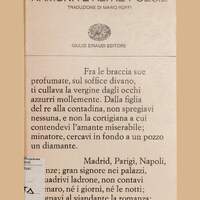 840 | MUSNamuna e altre poesie / Alfred de Musset ; introduzione e traduzione di Mario Roffi. - Torino : G. Einaudi, [1973]. - 256 p. ; 18 cm. - (Collezione di poesia ; 104)Nel v. dell'occhietto dedica ms. “a Emilio e Joyce Lussu con grande affetto, Mario Roffi, 10/1/74”. -