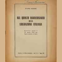 945 : V.5 | BONNel quinto anniversario della liberazione italiana : discorso tenuto il 25 aprile 1950 nel Teatro Adriano di Roma / Ivanoe Bonomi. – [S. l. : s. n.], 1950 (Roma : Tip. Dell’orso). – 14 p. ; 24 cm. – Estr. da: “La politica parlamentare”, 3 (1959), n. 6 (giugno).Nella cop. dedica ms. dell’a.: “A Emilio Lussu, Ivanoe Bonomi”. -