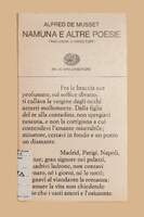 Namuna e altre poesie / Alfred de Musset ; introduzione e traduzione di Mario Roffi. - Torino : G. Einaudi, [1973]. - 256 p. ; 18 cm. - (Collezione di poesia ; 104) 840