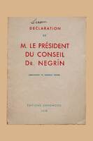Déclaration de M. le président du Conseil Dr. Negrín : Barcelone 14 octobre 1938. – [S.l.] : Éditions Espagnoles, 1938. – 12 p. ; 16 cm. 946