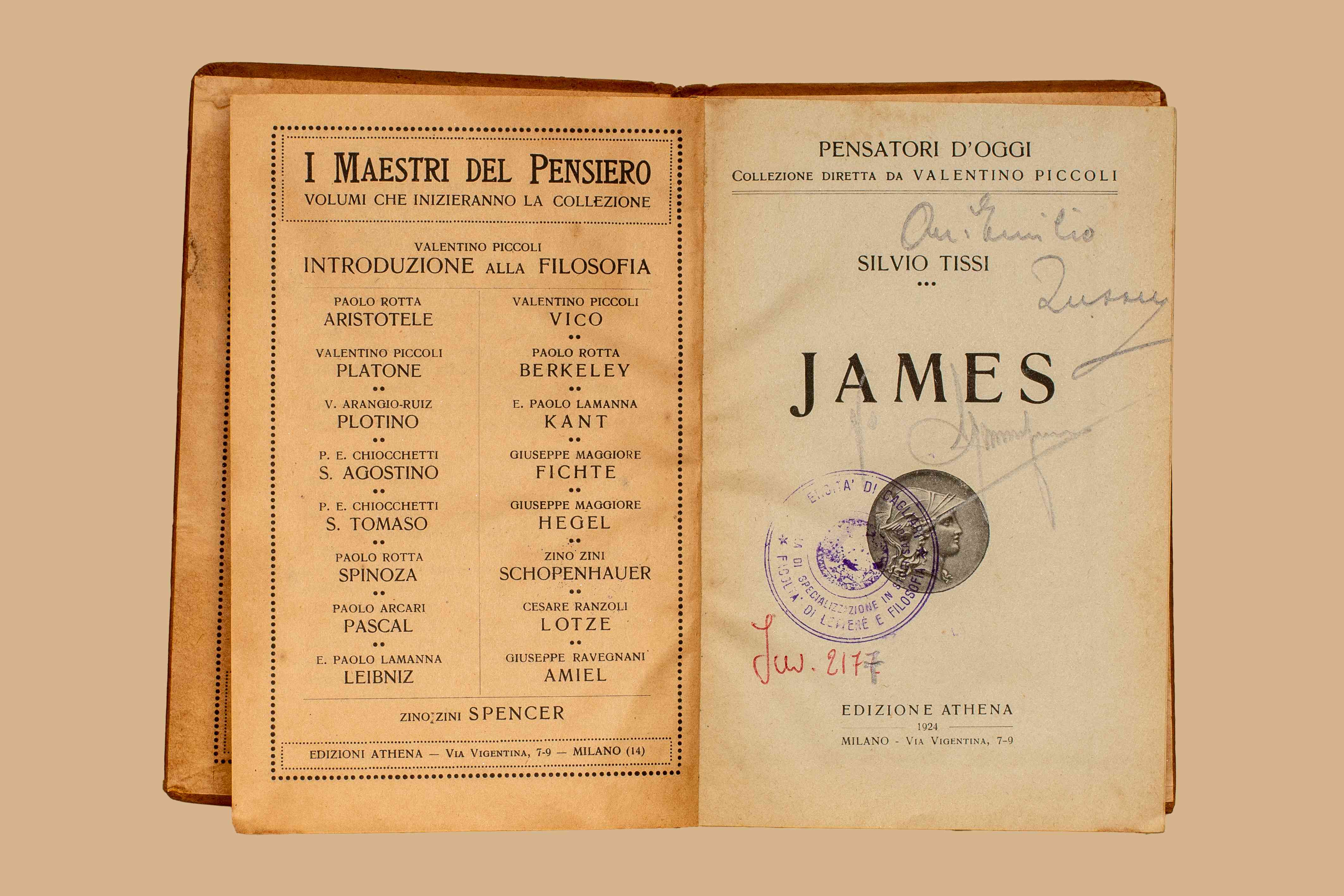 Titolo: James / Silvio Tissi. - Milano : Athena, 1924. - 110 p. ; 16 cm. - (Piccola biblioteca di coltura filosofica ; 4)