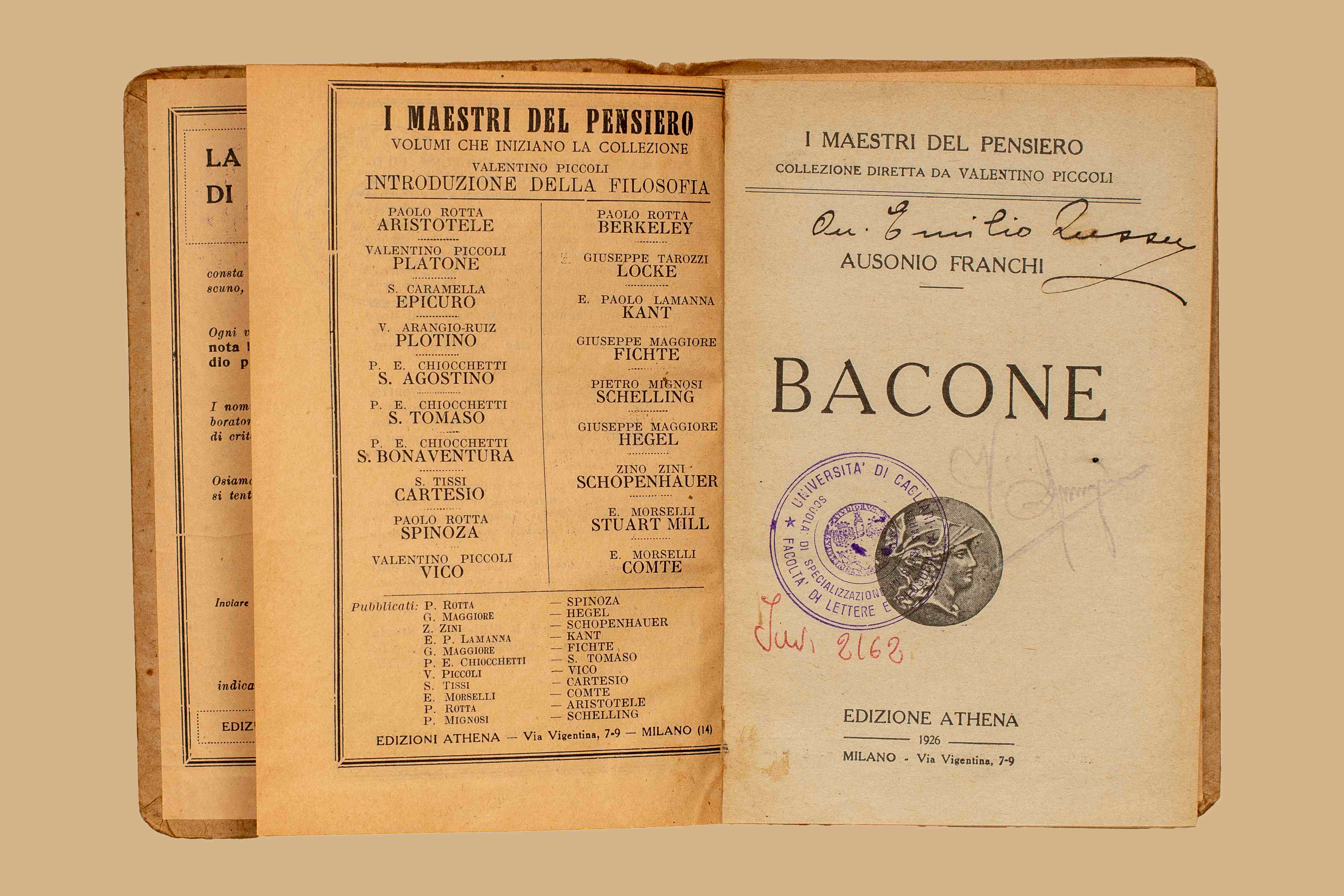 Titolo: Bacone / Ausonio Franchi. - Milano : Athena, 1926. - 94 p. ; 16 cm. - (Piccola biblioteca di coltura filosofica ; 20)