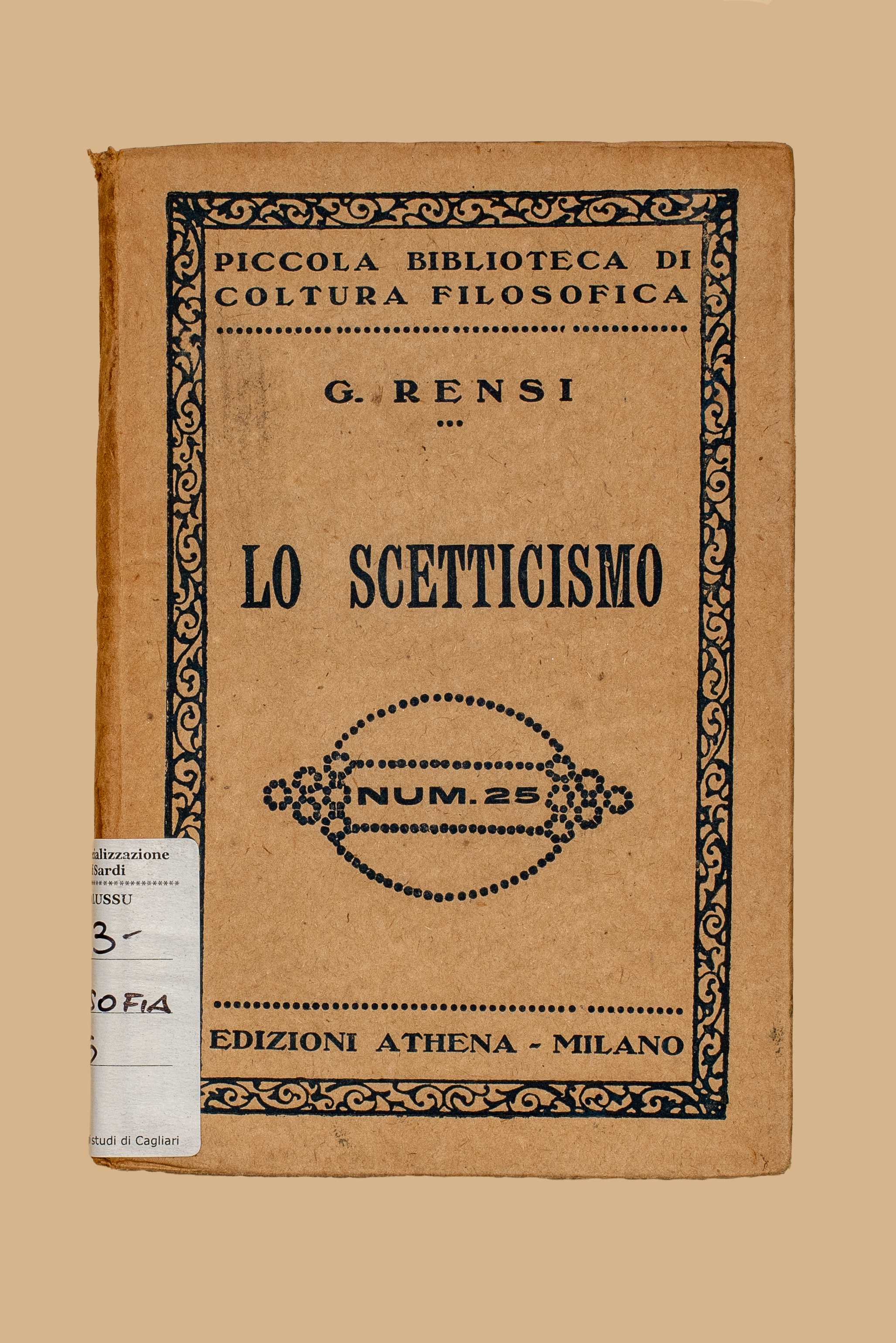 Titolo: Lo scetticismo / Giuseppe Rensi. - Milano : Athena, 1926. - 106 p. ; 16 cm. - (Piccola biblioteca di coltura filosofica ; 25)