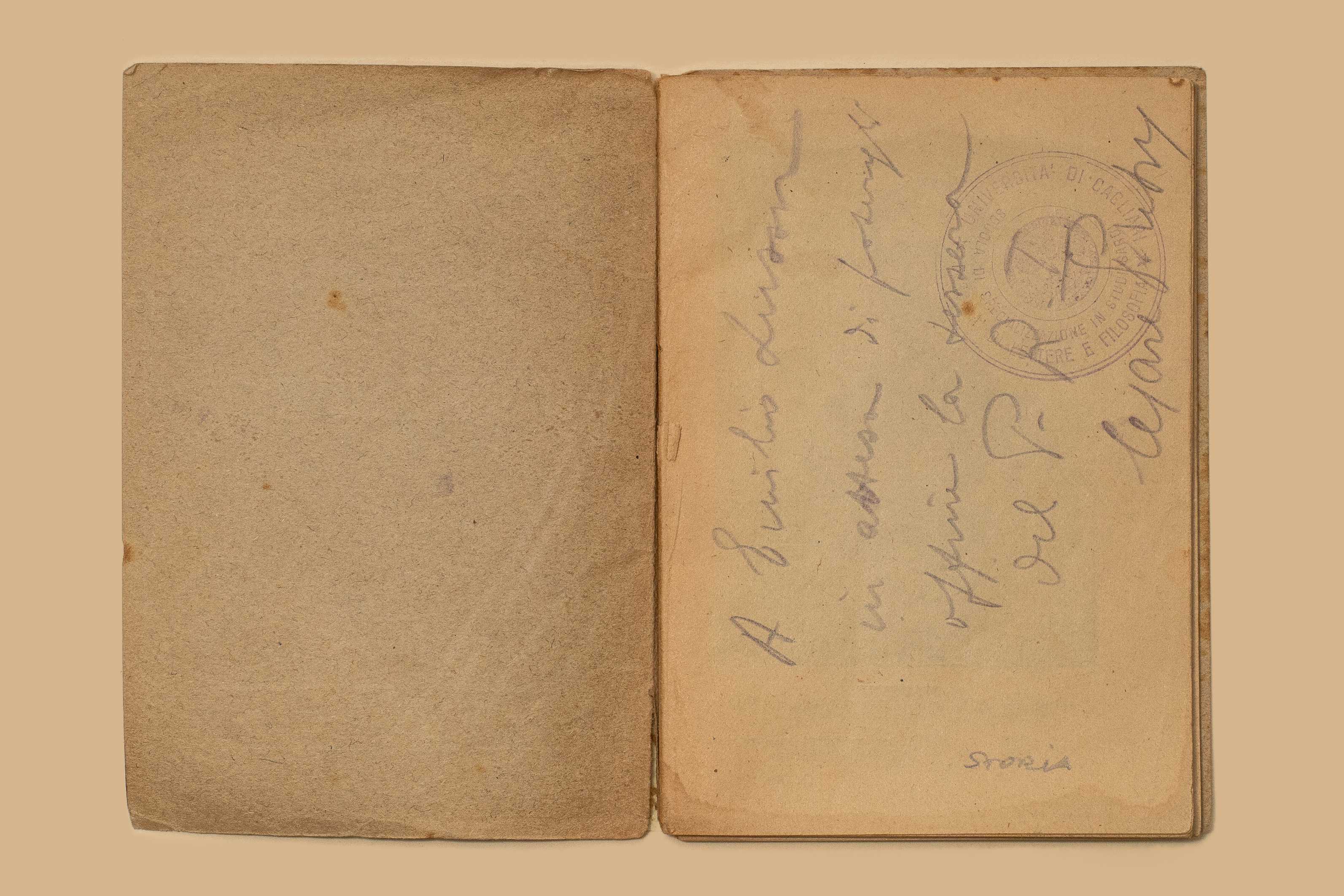 - Nell’occhietto dedica ms. “A Emilio Lussu, in attesa di potergli offrire la tessera del PRI, Cesare Pintus”.