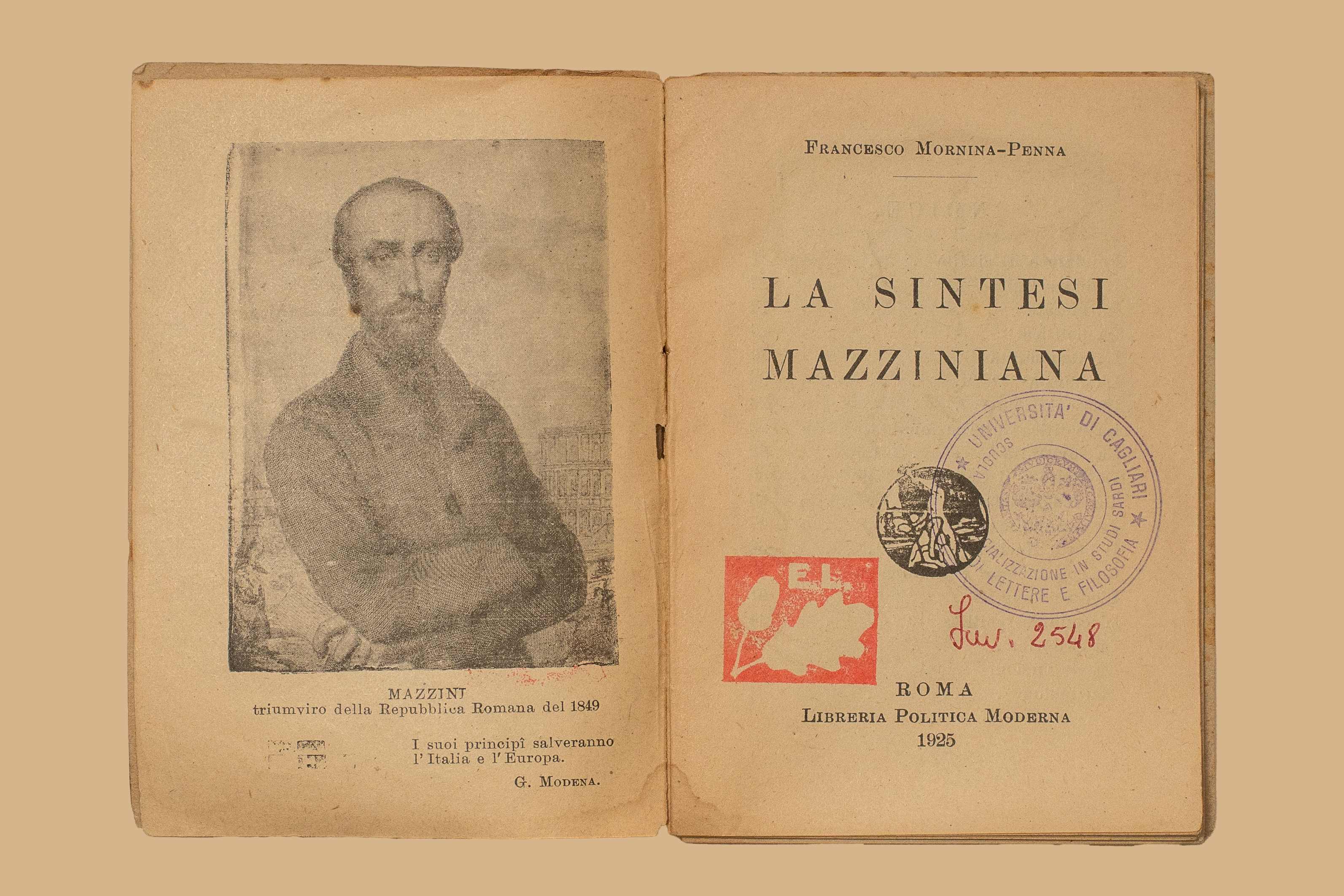 Titolo: La sintesi mazziniana / Francesco Mornina []] Penna. - Roma : Libreria politica moderna, 1925. - 96 p. : 1 ritr. ; 12 cm. - (Diamante ; 3)