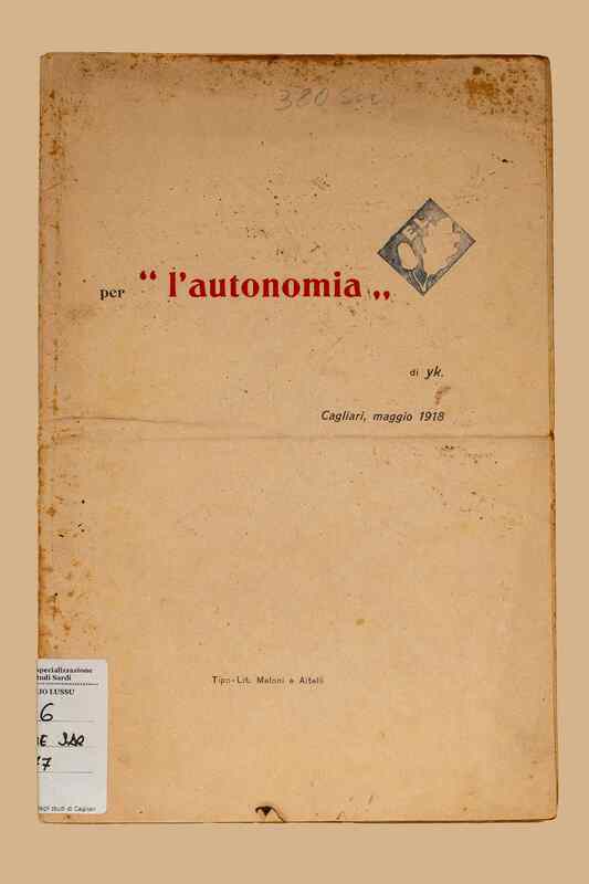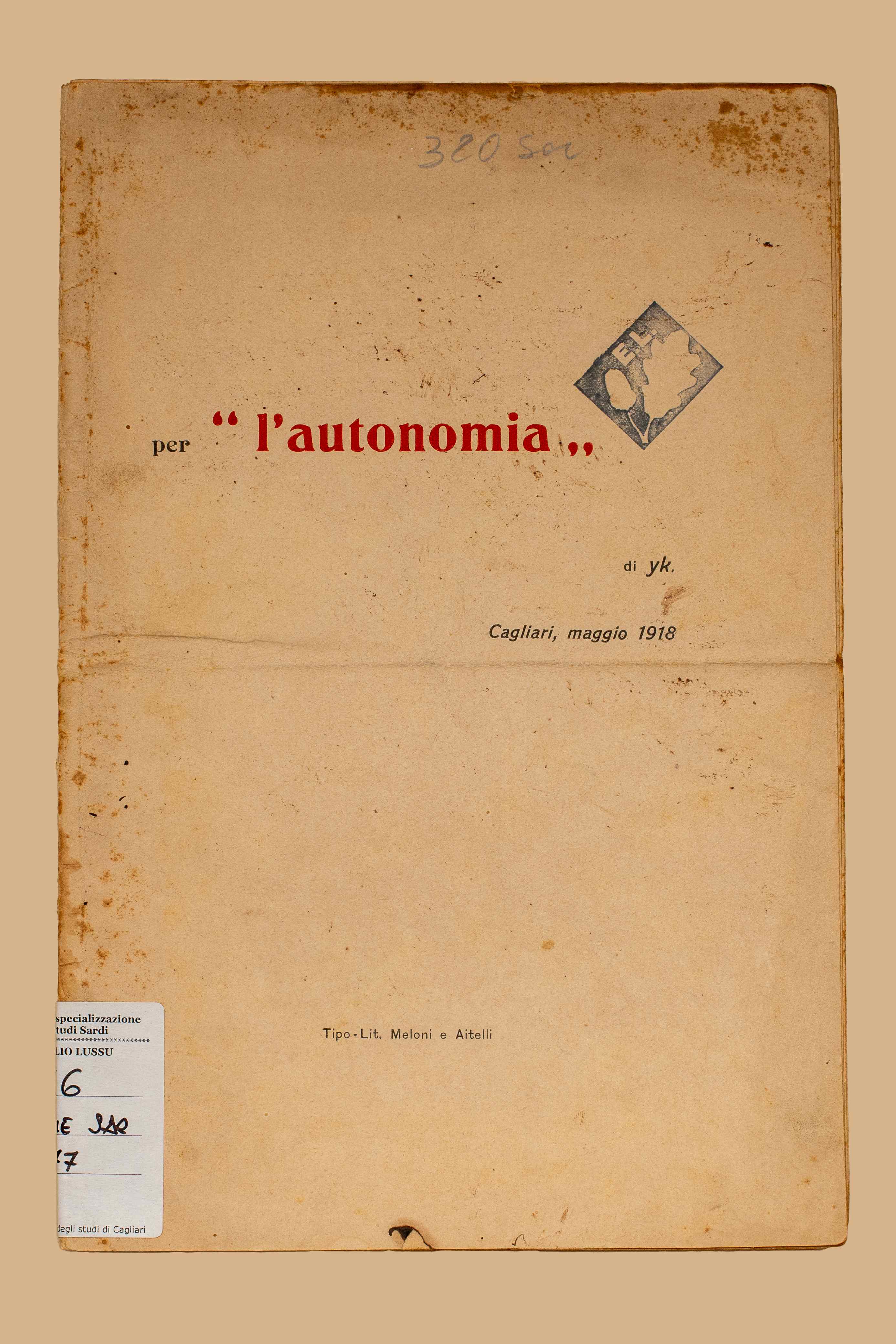 Titolo: Per l'autonomia / di Y. K. - Cagliari : Tip. Meloni e Aitelli, 1918. - 13 p. ; 24 cm.