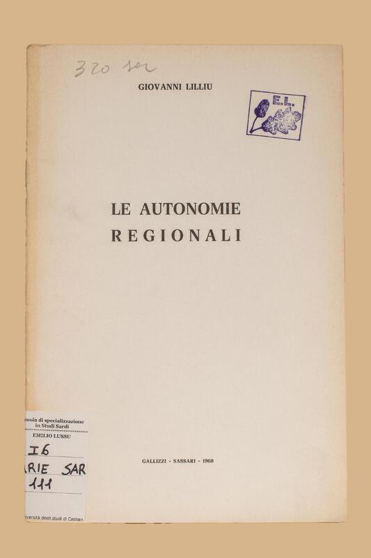 - Le autonomie regionali / Giovanni Lilliu. - Sassari : Gallizzi, 1968. - 23 p. ; 22 cm.