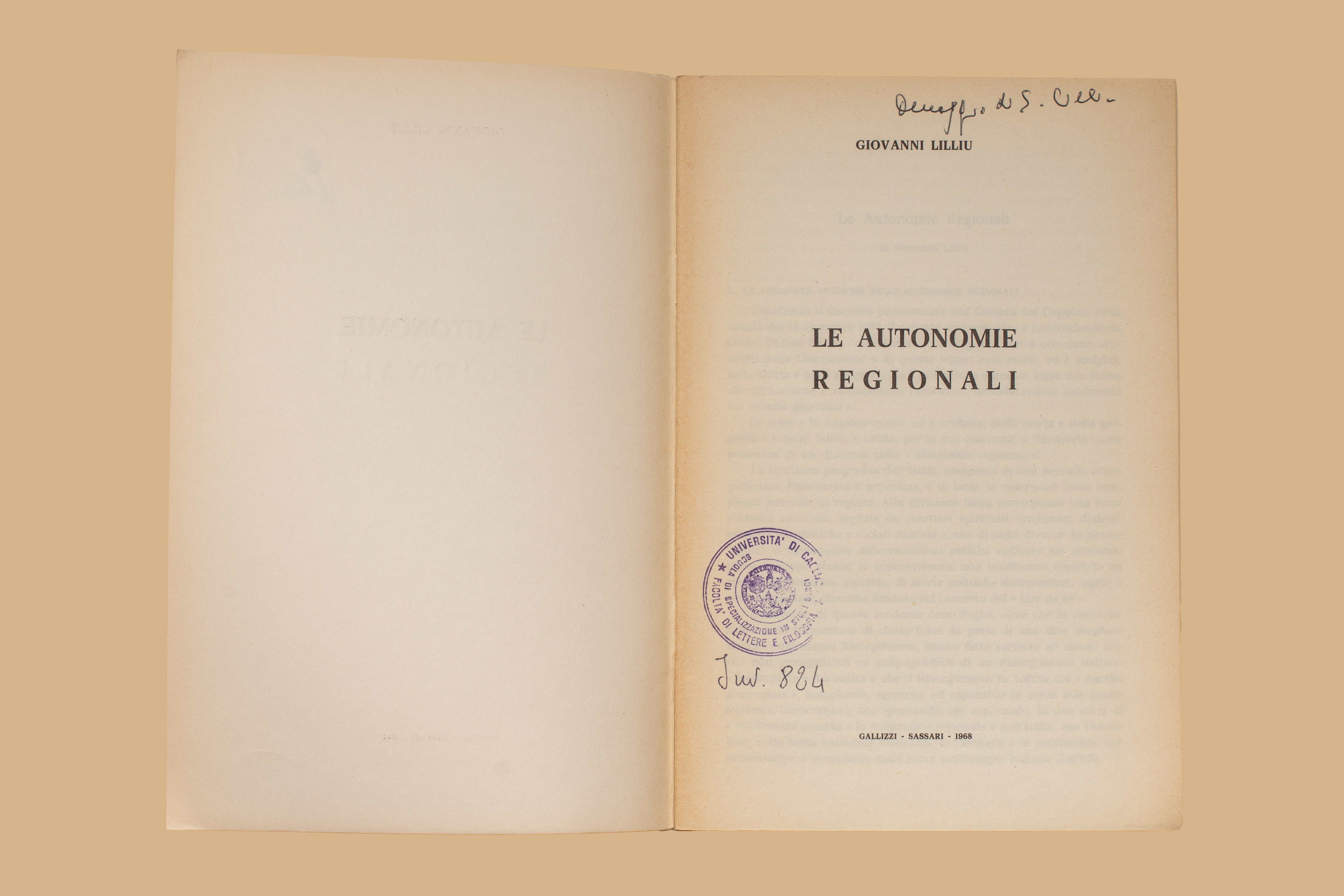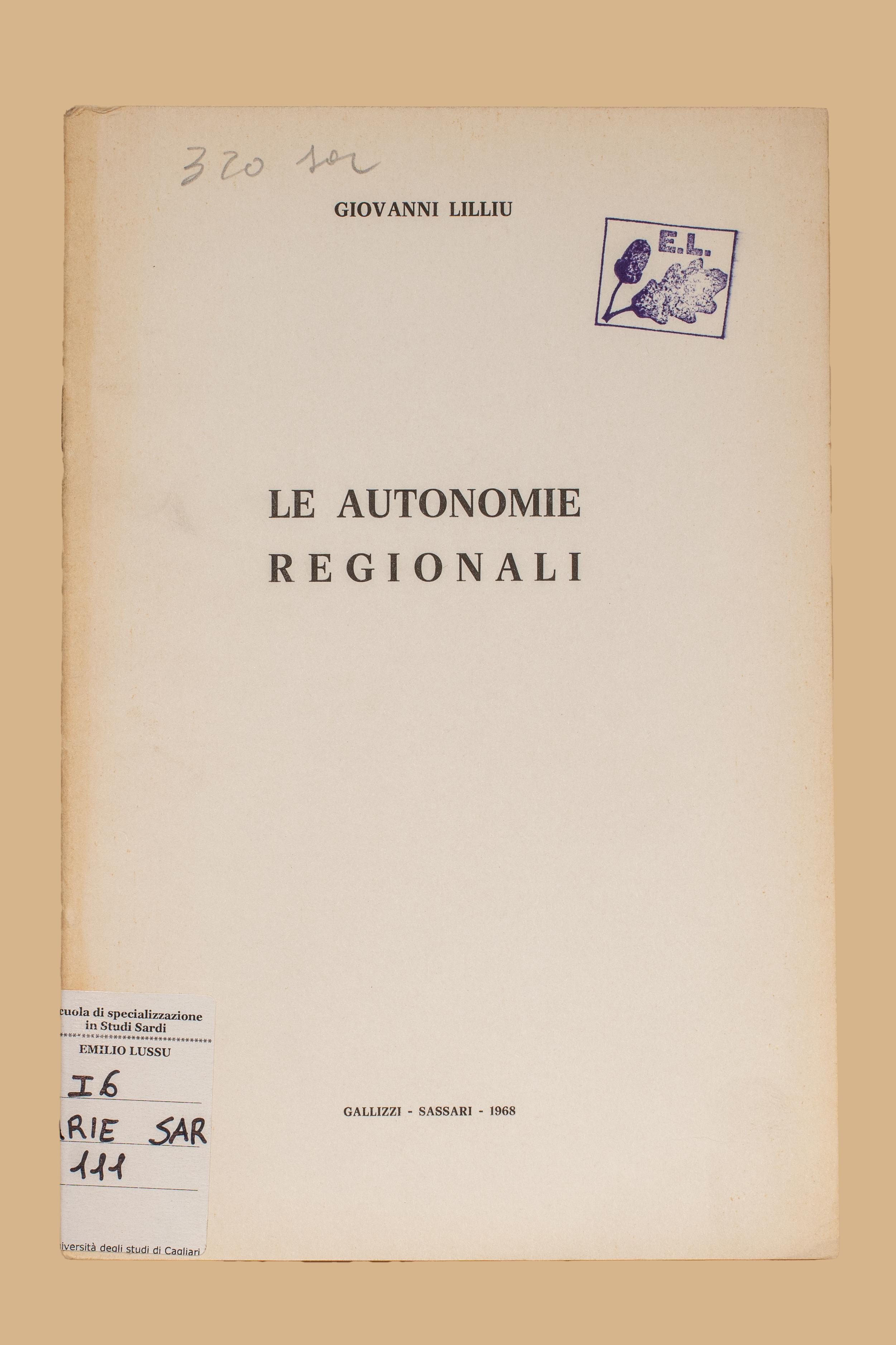 Titolo: Le autonomie regionali / Giovanni Lilliu. - Sassari : Gallizzi, 1968. - 23 p. ; 22 cm.