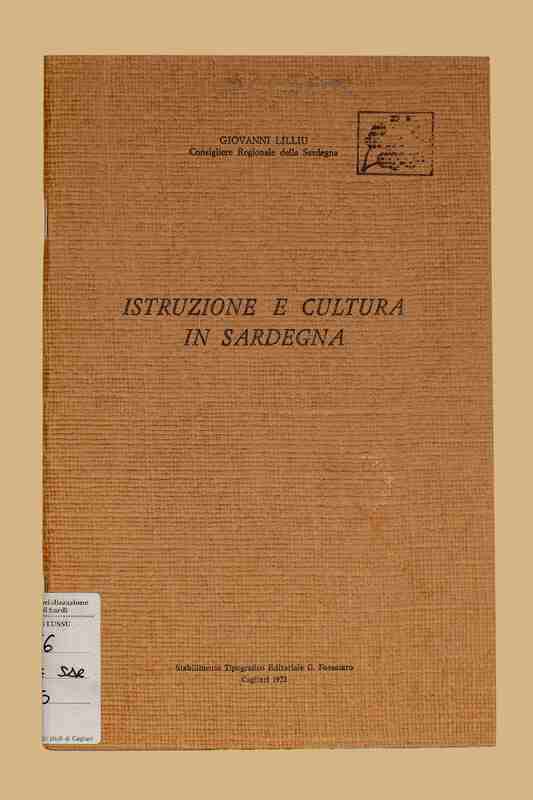 - Liberiamoci : due discorsi poco ortodossi / Giovanni Lilliu. - Cagliari : Fossataro, 1969. - 55 p. ; 23 cm.