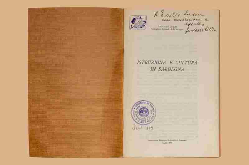 - Nel front dedica ms. dell'a. “A E. Lussu, con grande stima e affettuosa devota amicizia, Giovanni Lilliu”