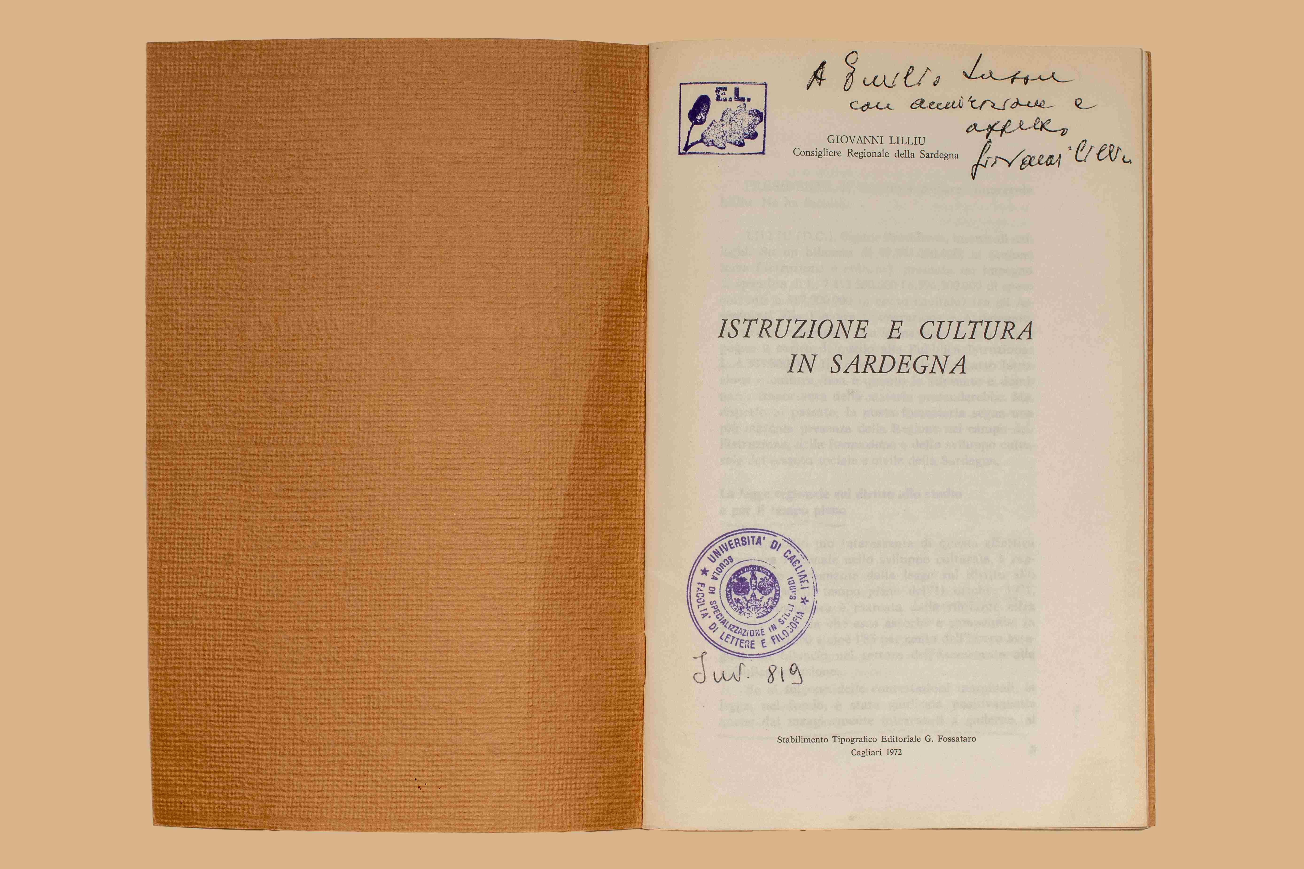 Note: Nel front dedica ms. dell'a. “A E. Lussu, con grande stima e affettuosa devota amicizia, Giovanni Lilliu”
