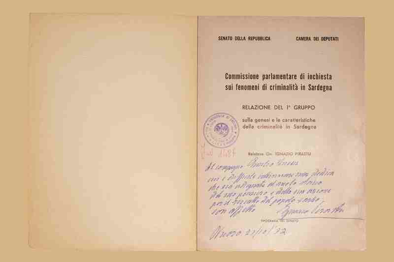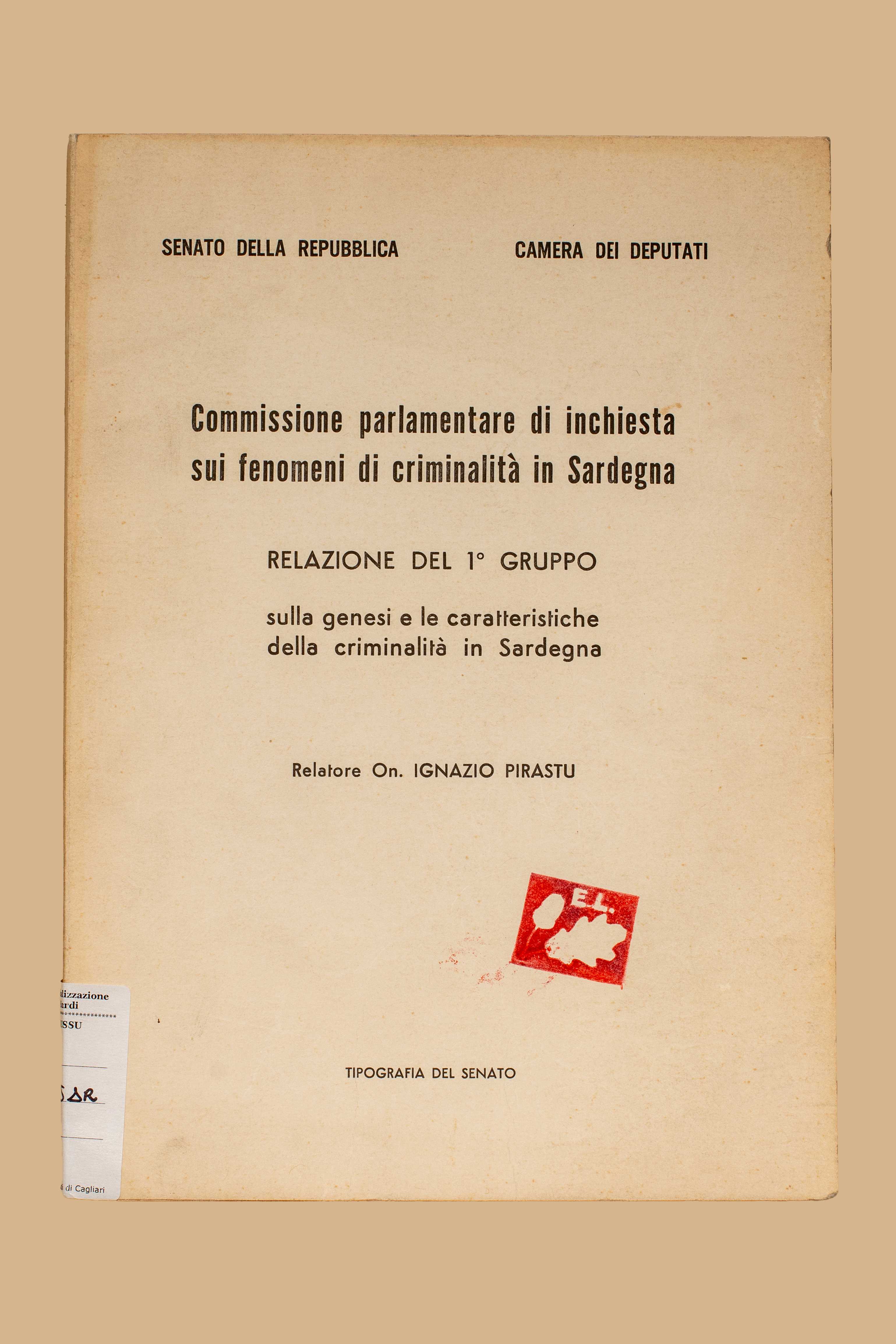 - Commissione parlamentare di inchiesta sui fenomeni di criminalità in Sardegna: relazione del 1. gruppo sulla genesi e le caratteristiche della criminalità in Sardegna / [relazione a cura di] Ignazio Pirastu. - [Roma] : Tipografia del senato, [19..]. - 214 p. ; 24 cm. - In testa al front.: Senato della Repubblica, Camera dei Deputati.