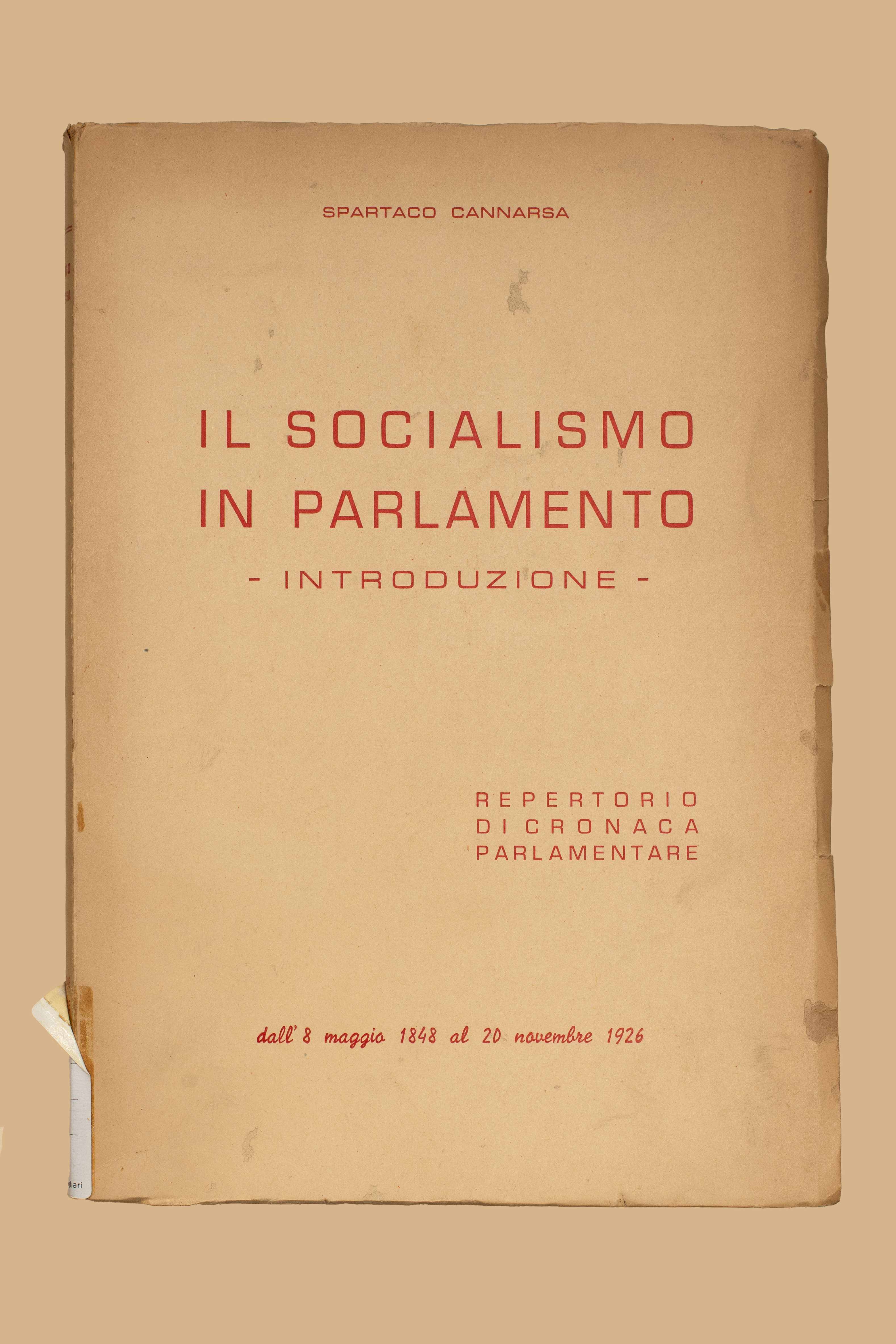 - Il socialismo in Parlamento : introduzione : repertorio di cronaca parlamentare dall'8 maggio 1848 al 20 novembre 1926 / Spartaco Cannarsa. Napoli : [s. n.], 1955 (Napoli : Raimondi). - 354 p. ; 24 cm.