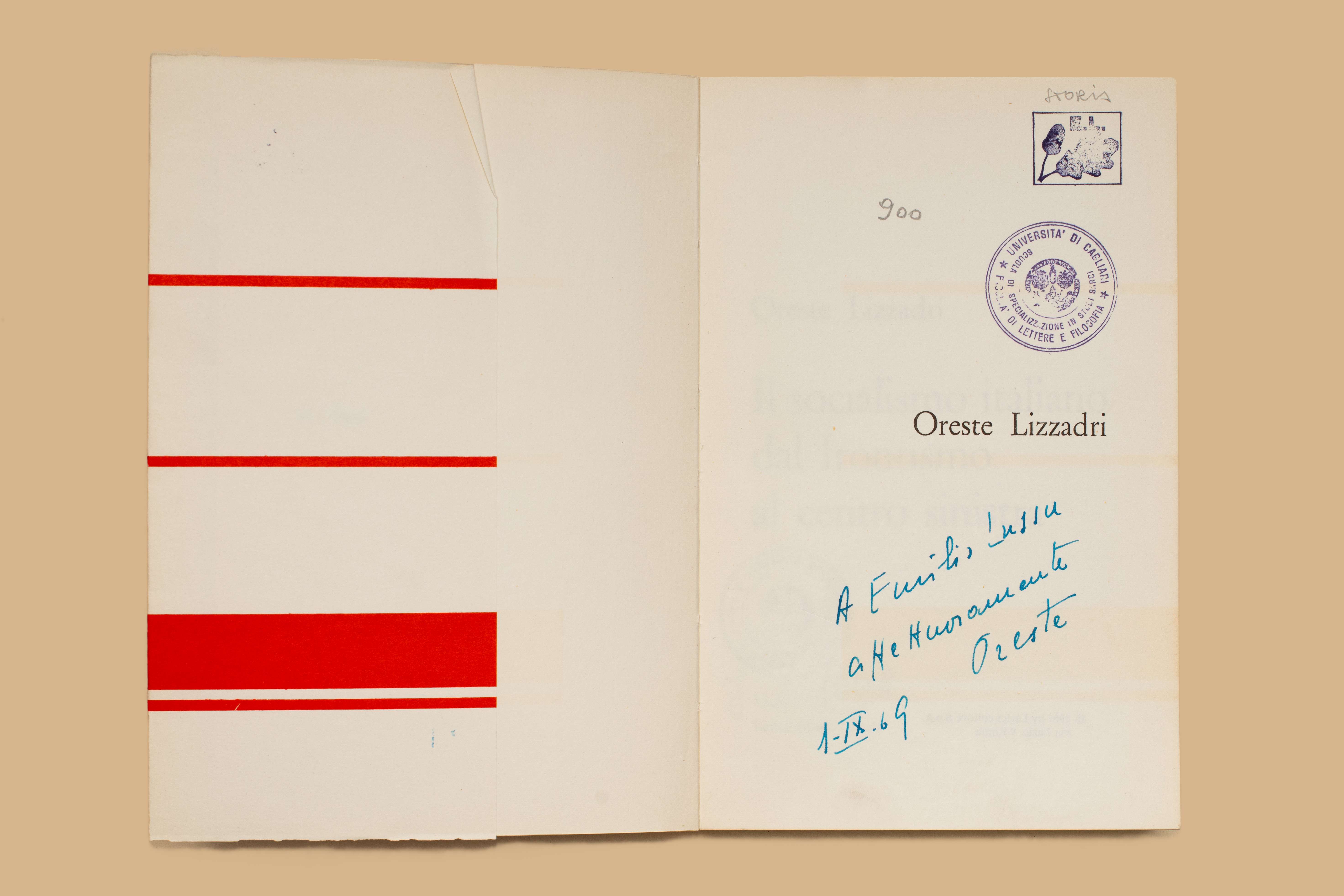 - Nell’occhietto dedica dell’a.: “A Emilio Lussu affettuosamente, Oreste 1.IX.69”.