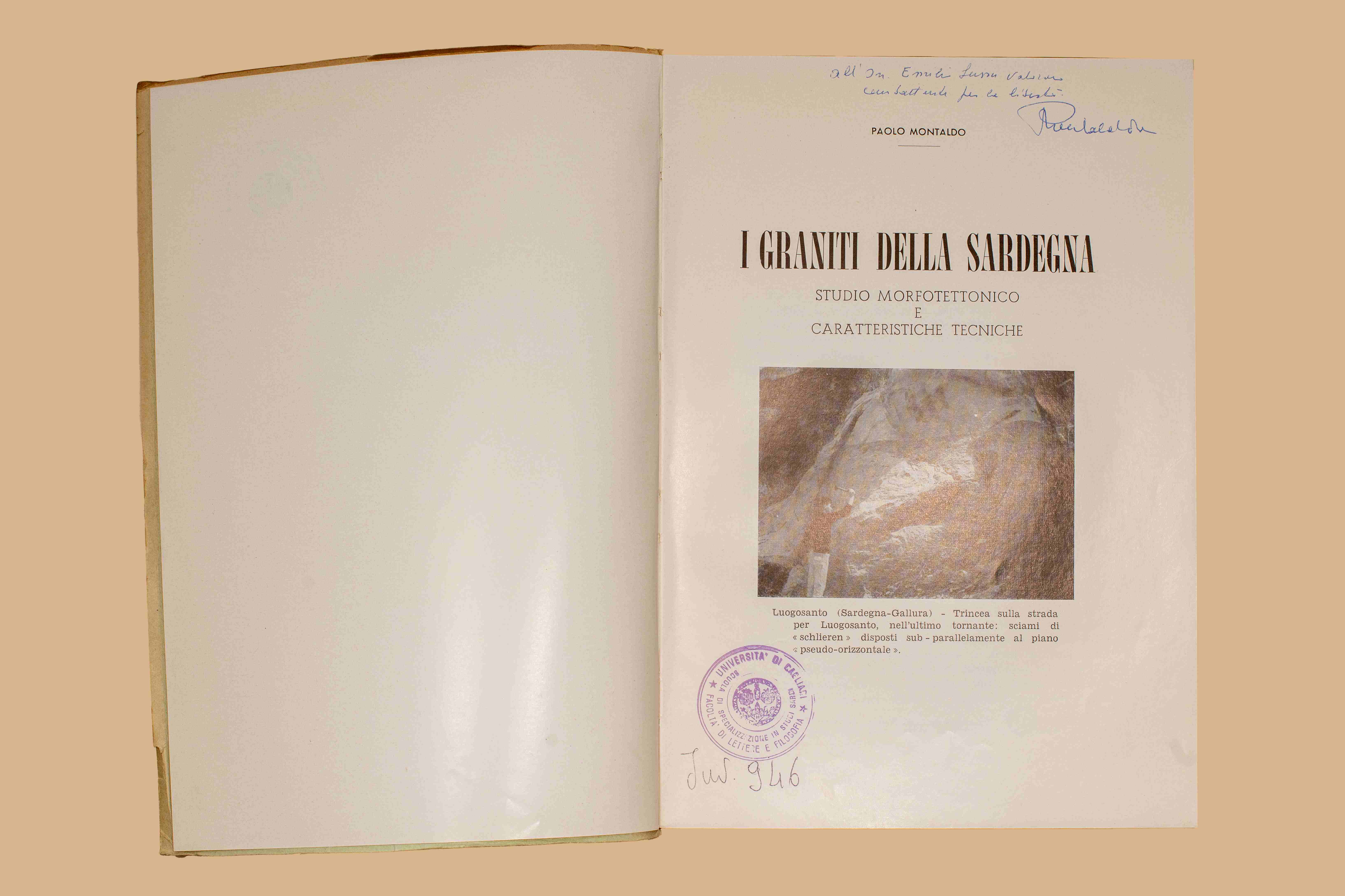 Titolo: I graniti della Sardegna : studio morfotettonico e caratteristiche tecniche / Paolo Montaldo. - Cagliari : SEI, pres. 1962. - IV, 204 p. : ill. ; 25 cm. - Presentazione S. Vardabasso.