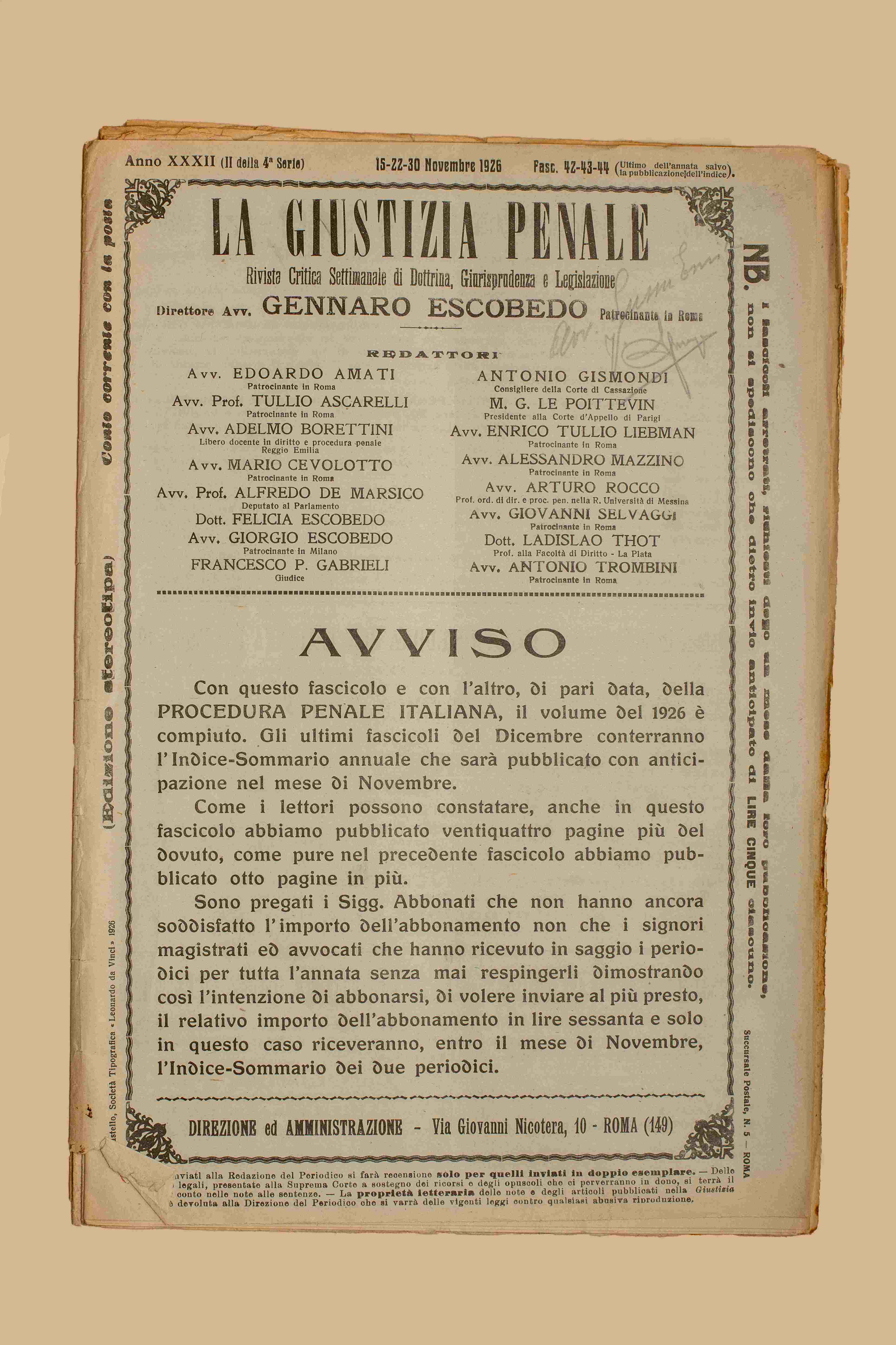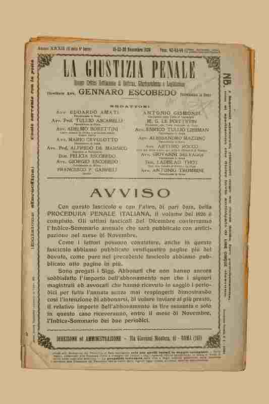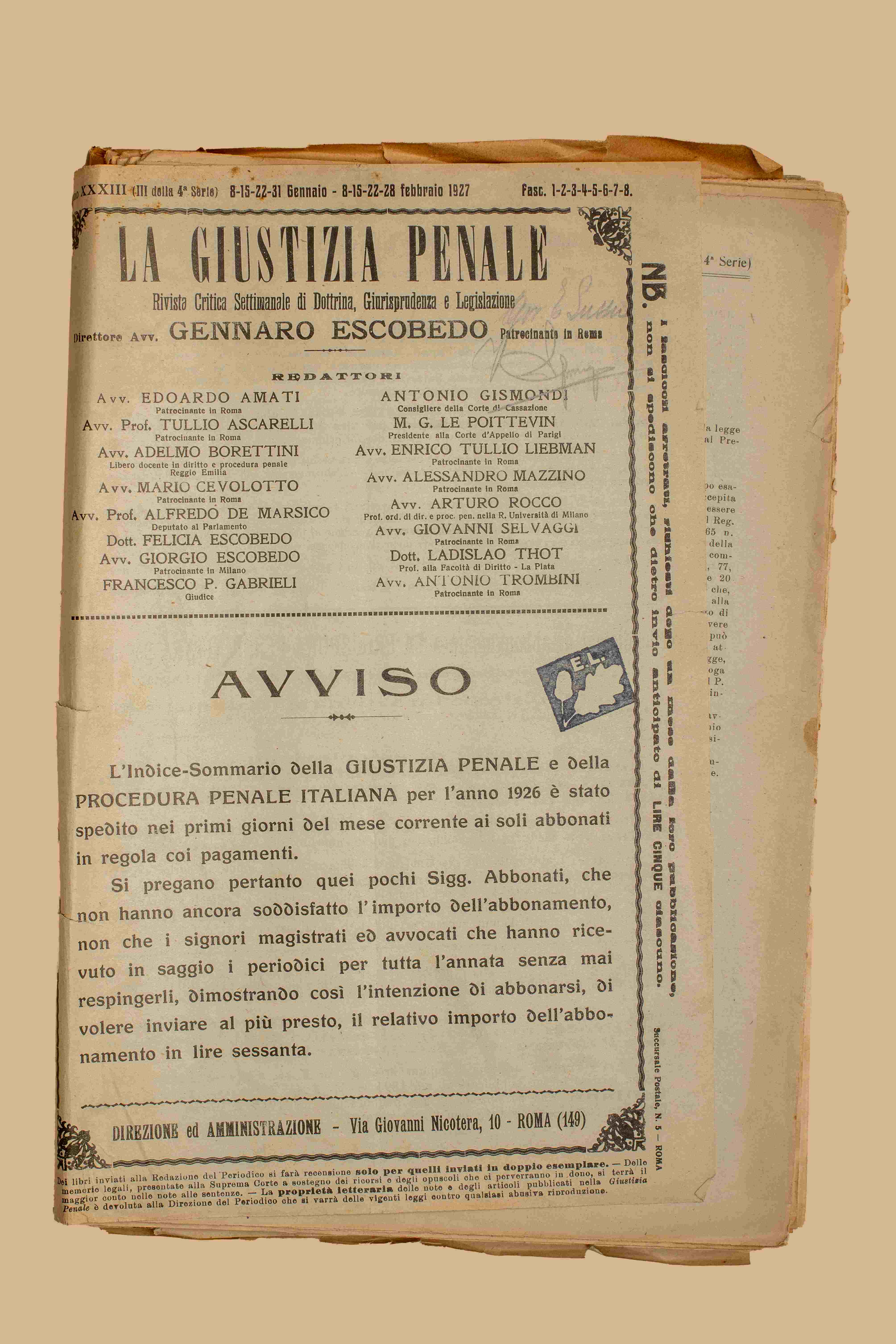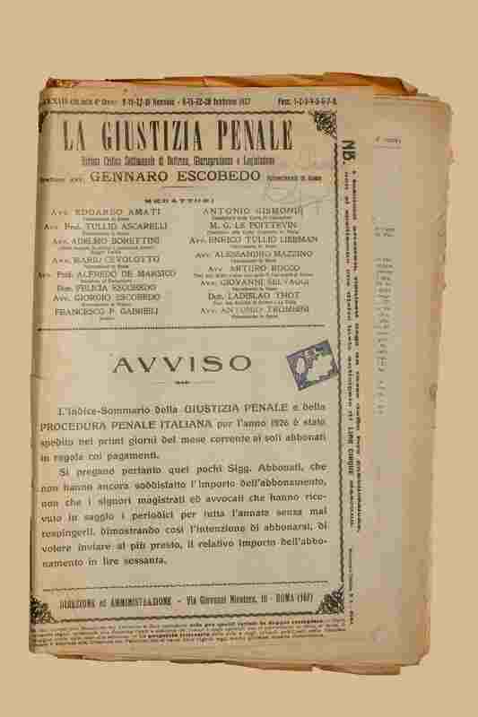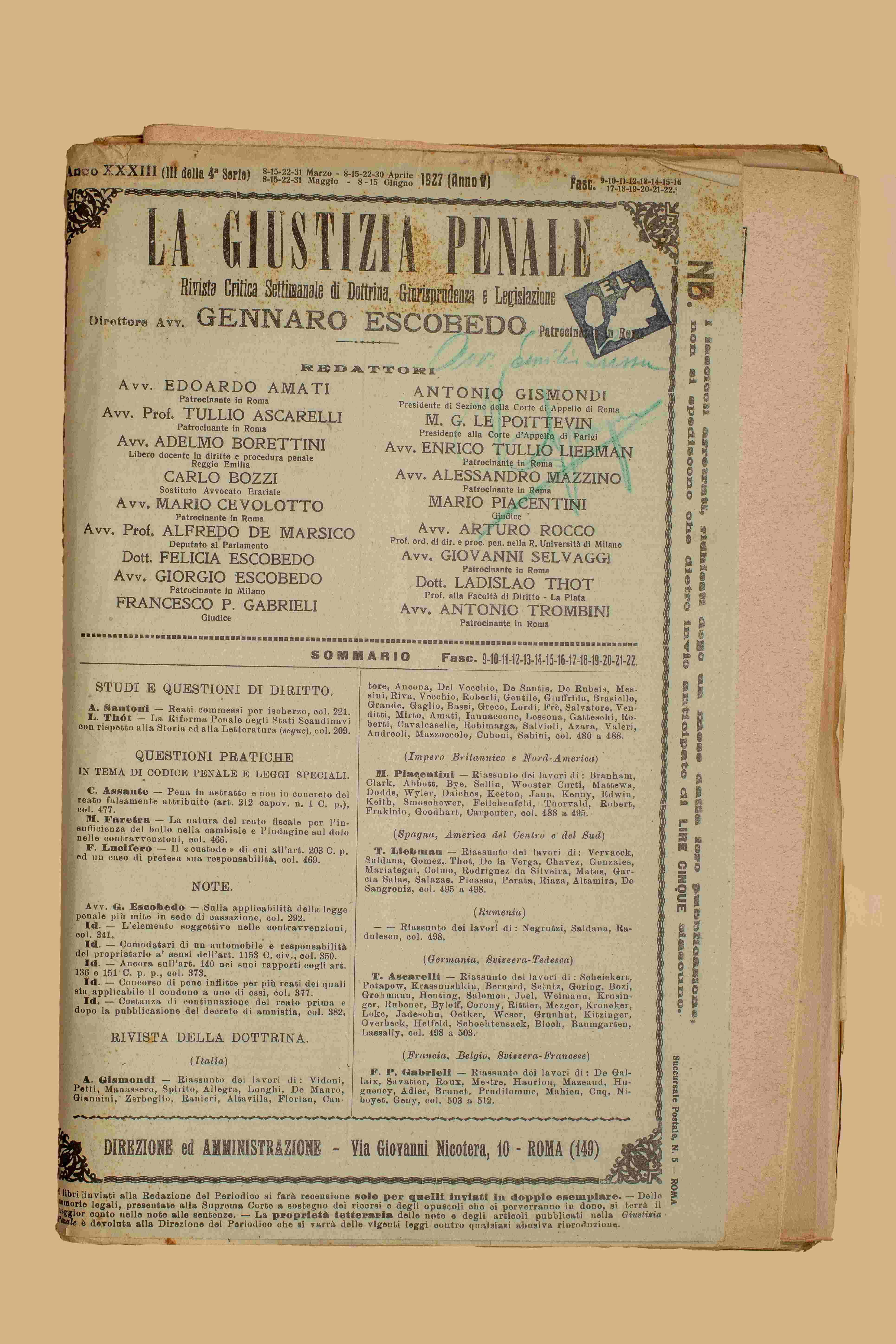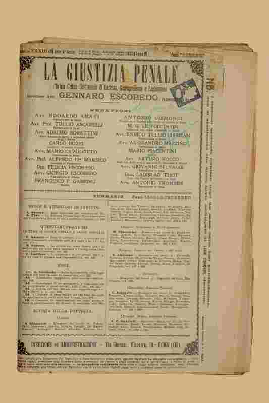 Titolo: La giustizia penale : rivista critica settimanale di giurisprudenza, dottrina e legislazione. Roma : Soc. edit. del periodico La giustizia penale, 1895- . .