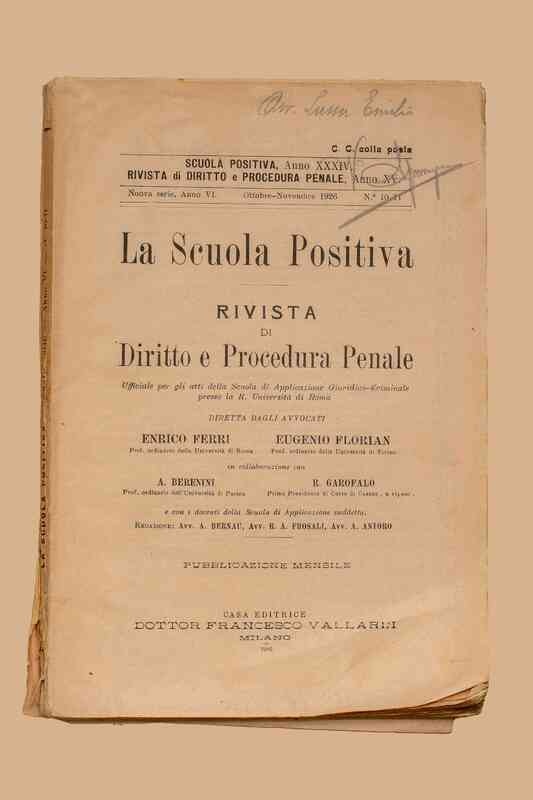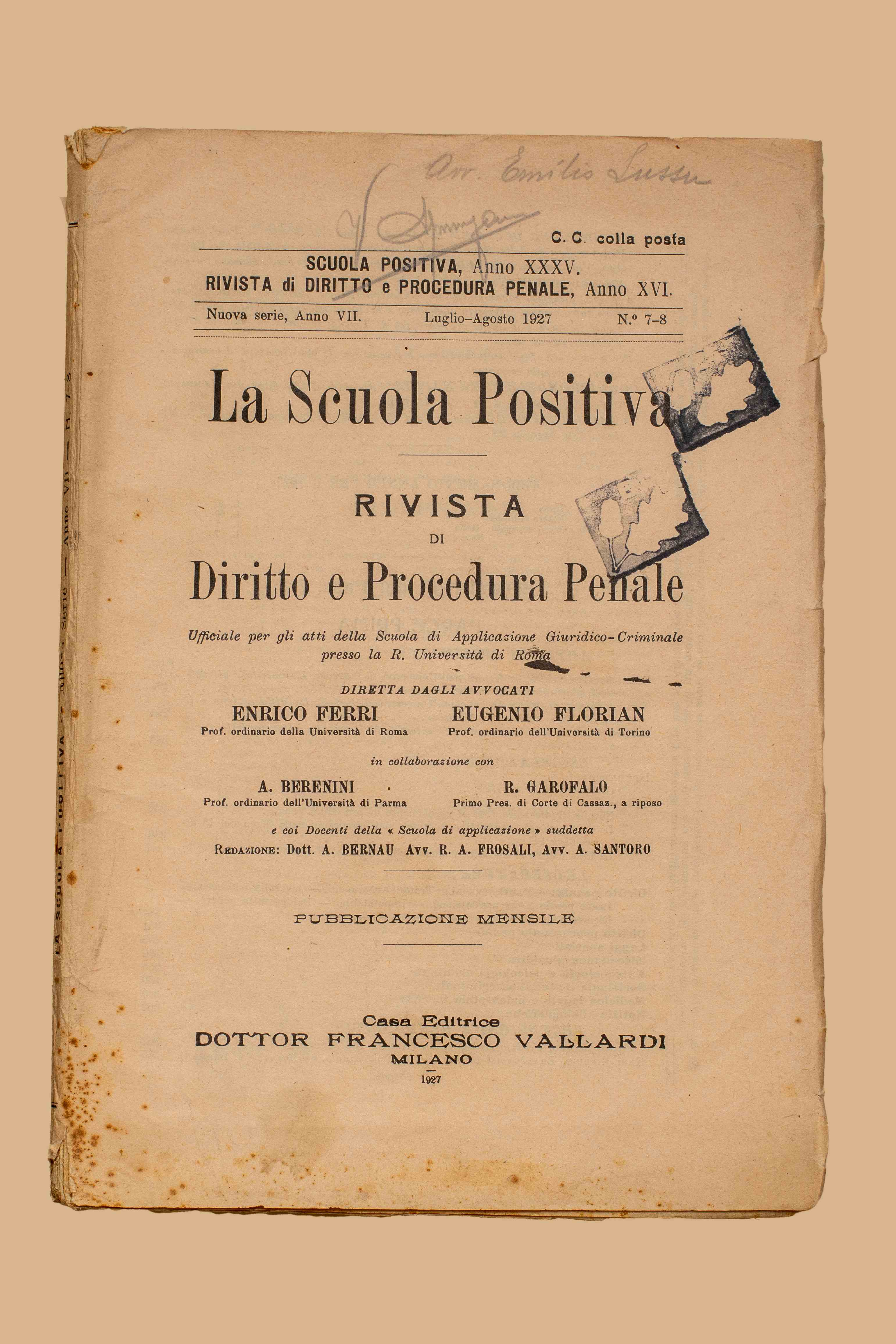 Titolo: La scuola positiva : rivista di diritto e procedura penale. Milano : Vallardi, 1921—1972. Assorbe: La scuola positiva nella dottrina e nella giurisprudenza penale e Rivista di diritto e procedura penale.