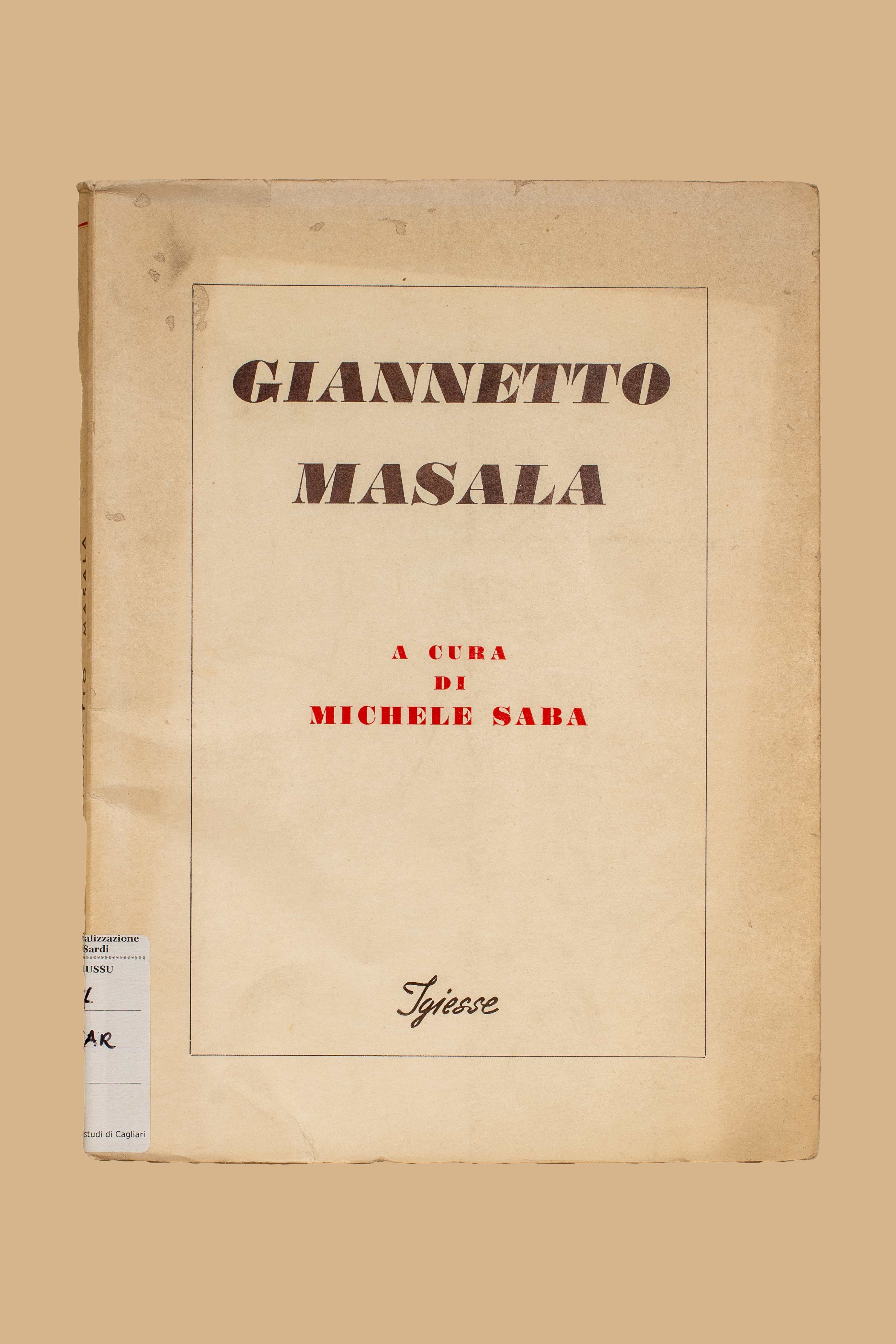 Titolo: Giannetto Masala / a cura di Michele Saba. - [Milano] : Igiesse, stampa 1954. - 94 p. : 1 ritr. ; 22 cm.
