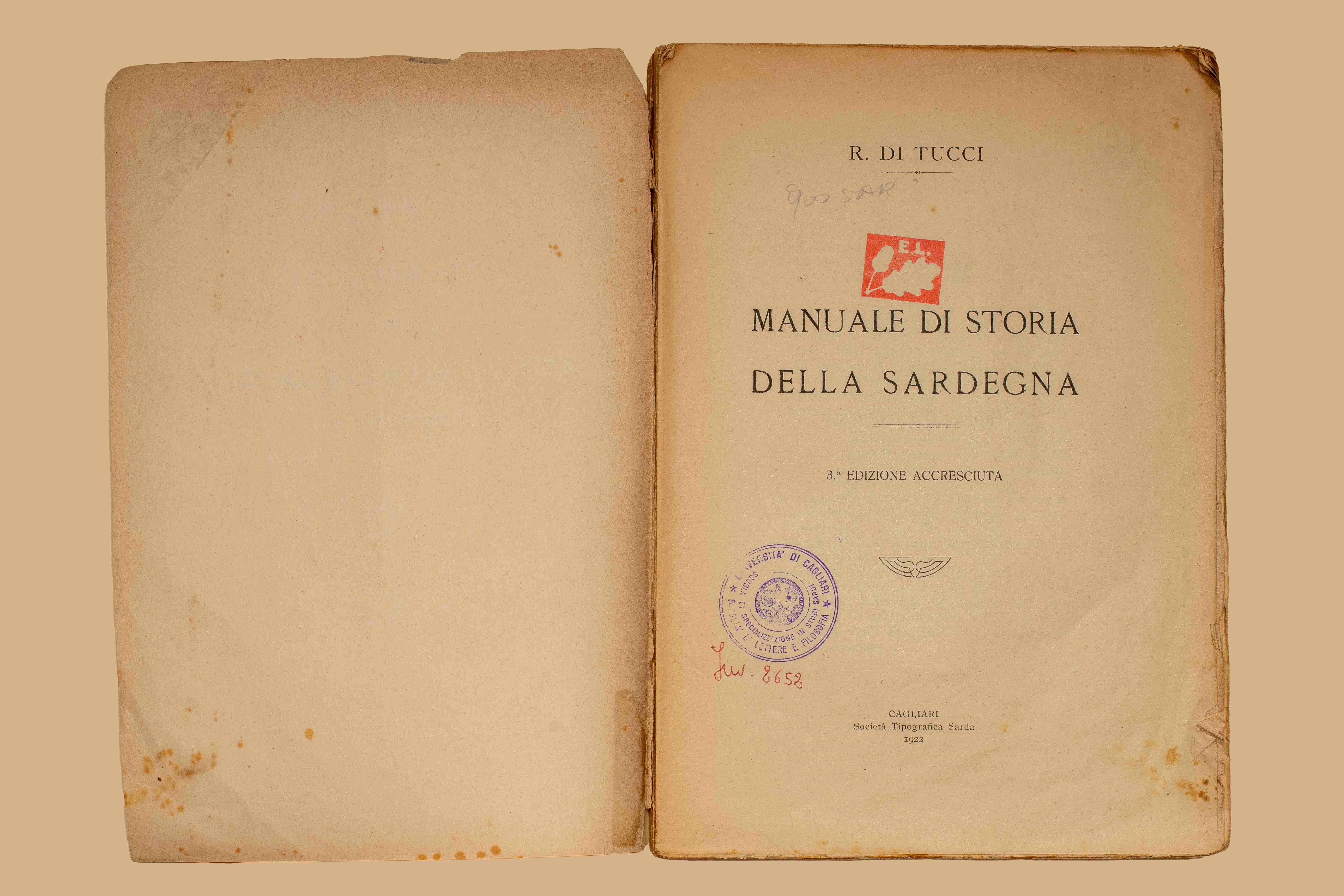 - Manuale di storia della Sardegna / R. Di Tucci. - 3. ed. accresciuta. Cagliari : Societa Tipografica Sarda, 1922. - 175 p. ; 24 cm.