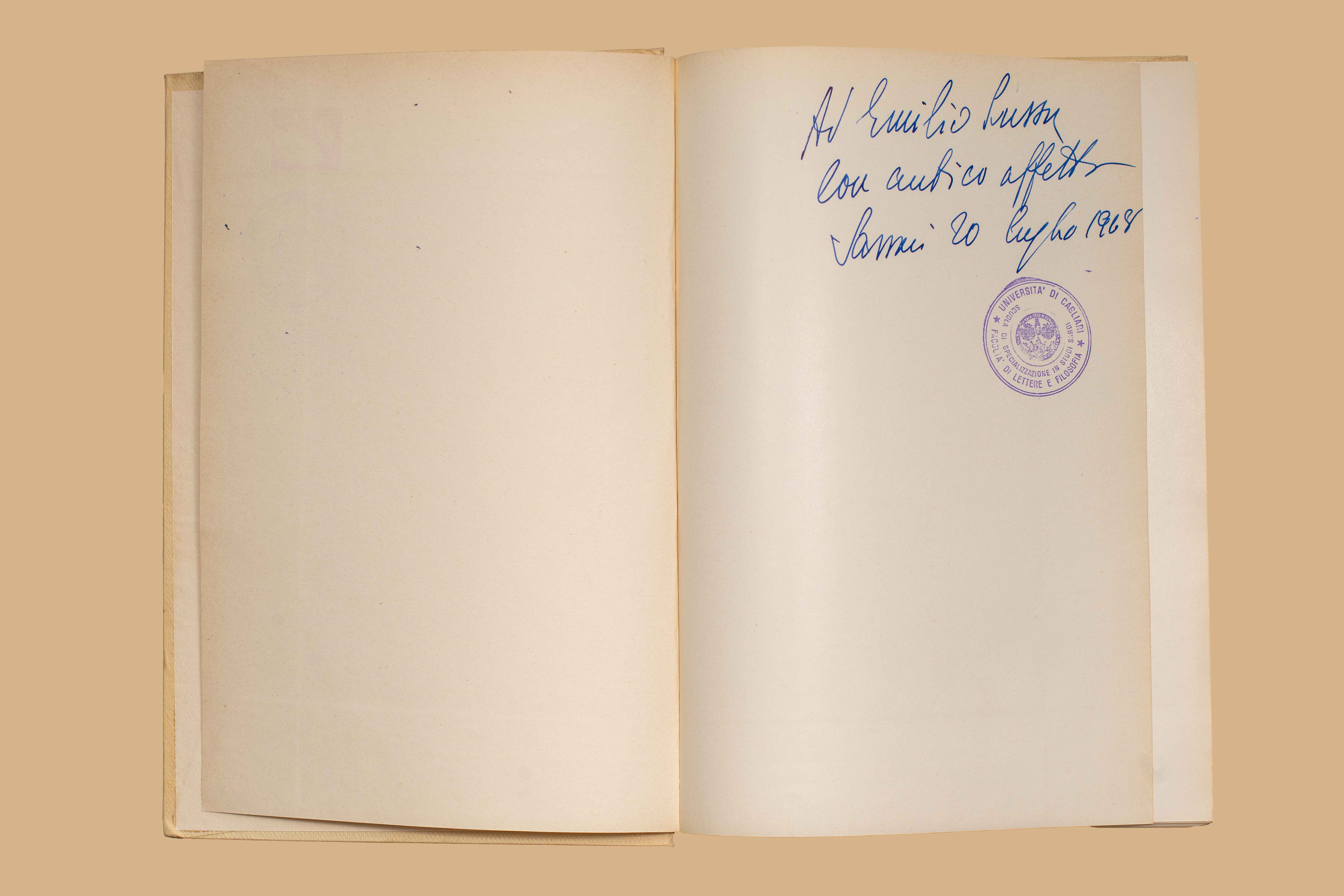 - Nell'occhietto di I5 STO SAR 043 dedica ms. “Ad Emilio Lussu, con antico affetto, Sassari, 20 luglio 1968”.