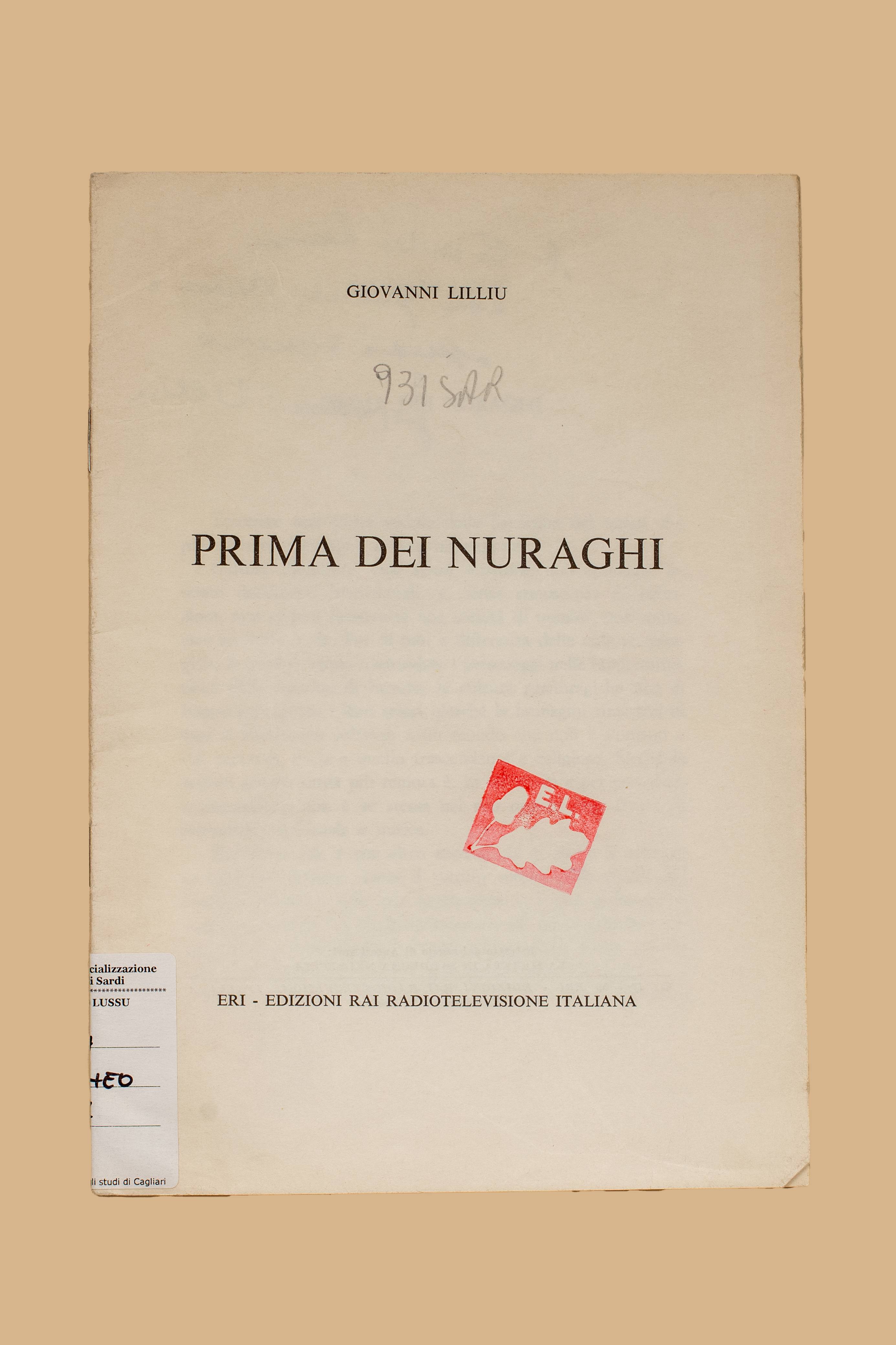 - Prima dei nuraghi / Giovanni Lilliu. - Torino : ERI, 1967. - 12 p. ; 22 cm. - Estr. da: La società in Sardegna nei secoli. - Torino : ERI.