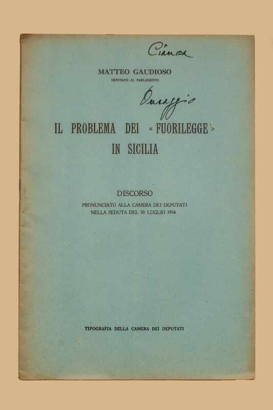 Titolo: Il problema dei fuorilegge in Sicilia : discorso pronunciato alla Camera dei deputati nella seduta del 30 luglio 1954 / Matteo Gaudioso. – [S.l.] : Tipografia della Camera dei deputati, [1954?]. – 22 p. ; 22 cm.