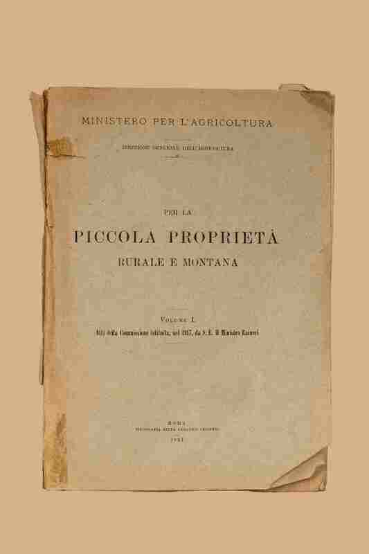 Titolo: Per la piccola proprietà rurale e montana. 1: Atti della commissione istuituita nel 1917 da S. E. il ministro Raineri / Direzione generale dell'agricoltura. - Roma : Tipogr. L. Cecchini, 1921. - 164 p. ; 27 cm. - In testa al front. : Ministero per l'agricoltura. Direzione generale dell'agricoltura.