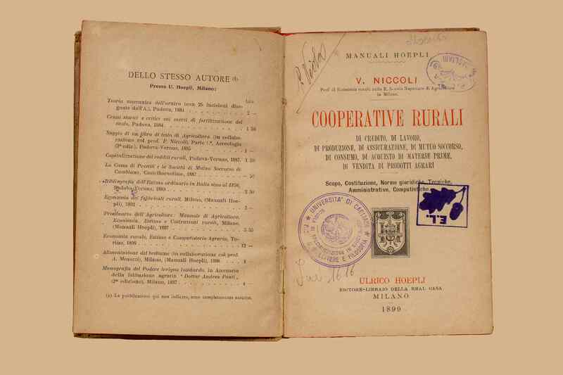 Titolo: Cooperative rurali di credito, di lavoro, di produzione, di assicurazione, di mutuo soccorso, di consumo, di acquisto di materie prime, di vendita di prodotti agrari : scopo, costituzione, norme giuridiche, tecniche, amministrative, computistiche / V. Niccoli. - Milano : U. Hoepli, 1899. - VII, 361, 64 p. ; 16 cm. - (Manuali Hoepli)