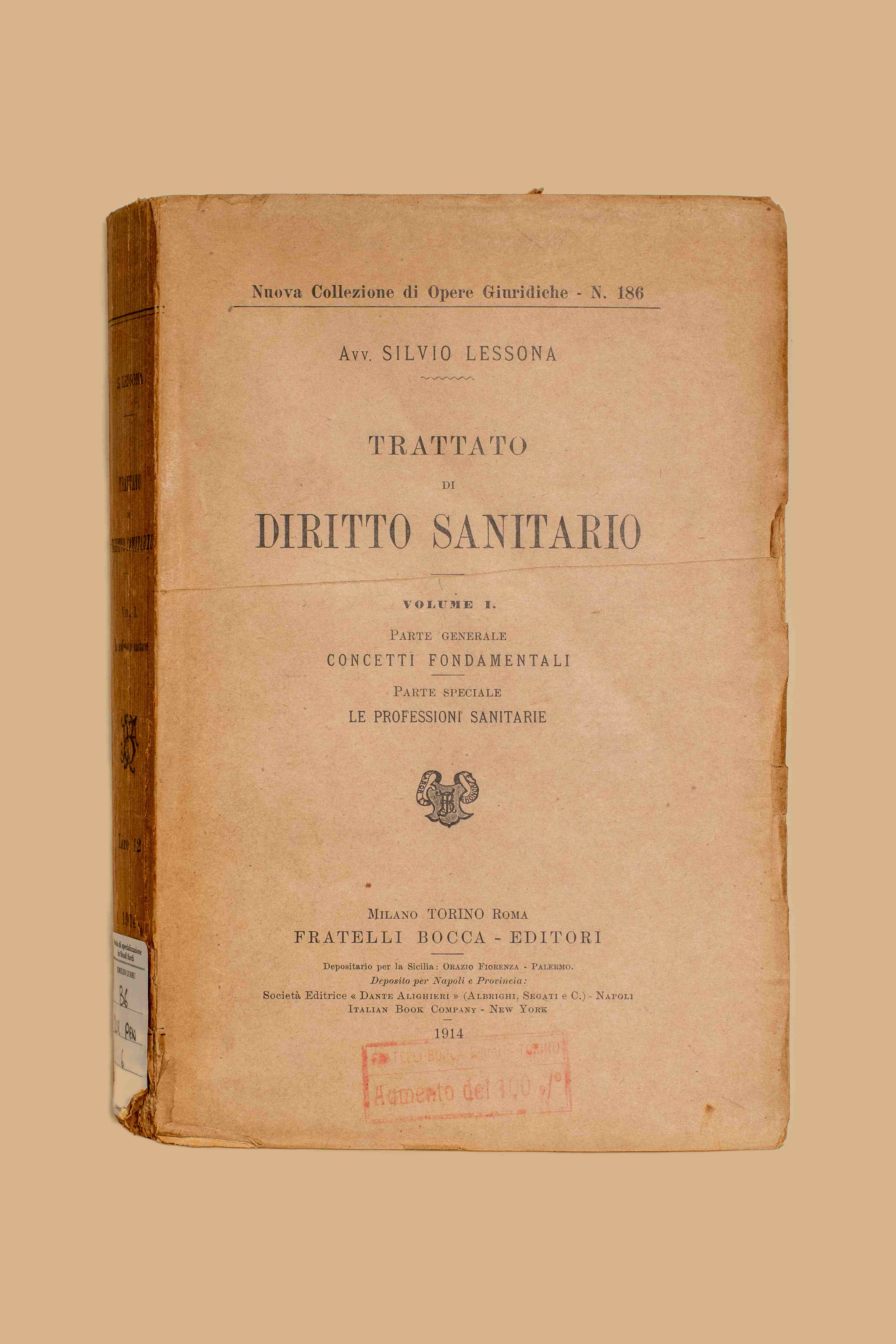- Trattato di diritto sanitario>> 1: Concetti fondamentali ; Le professioni sanitarie / Silvio Lessona. - Milano ; Torino ; Roma : Bocca, 1914-1921. - 2 v, ; 23 cm. - (Nuova collezione di opere giuridiche ; 186)