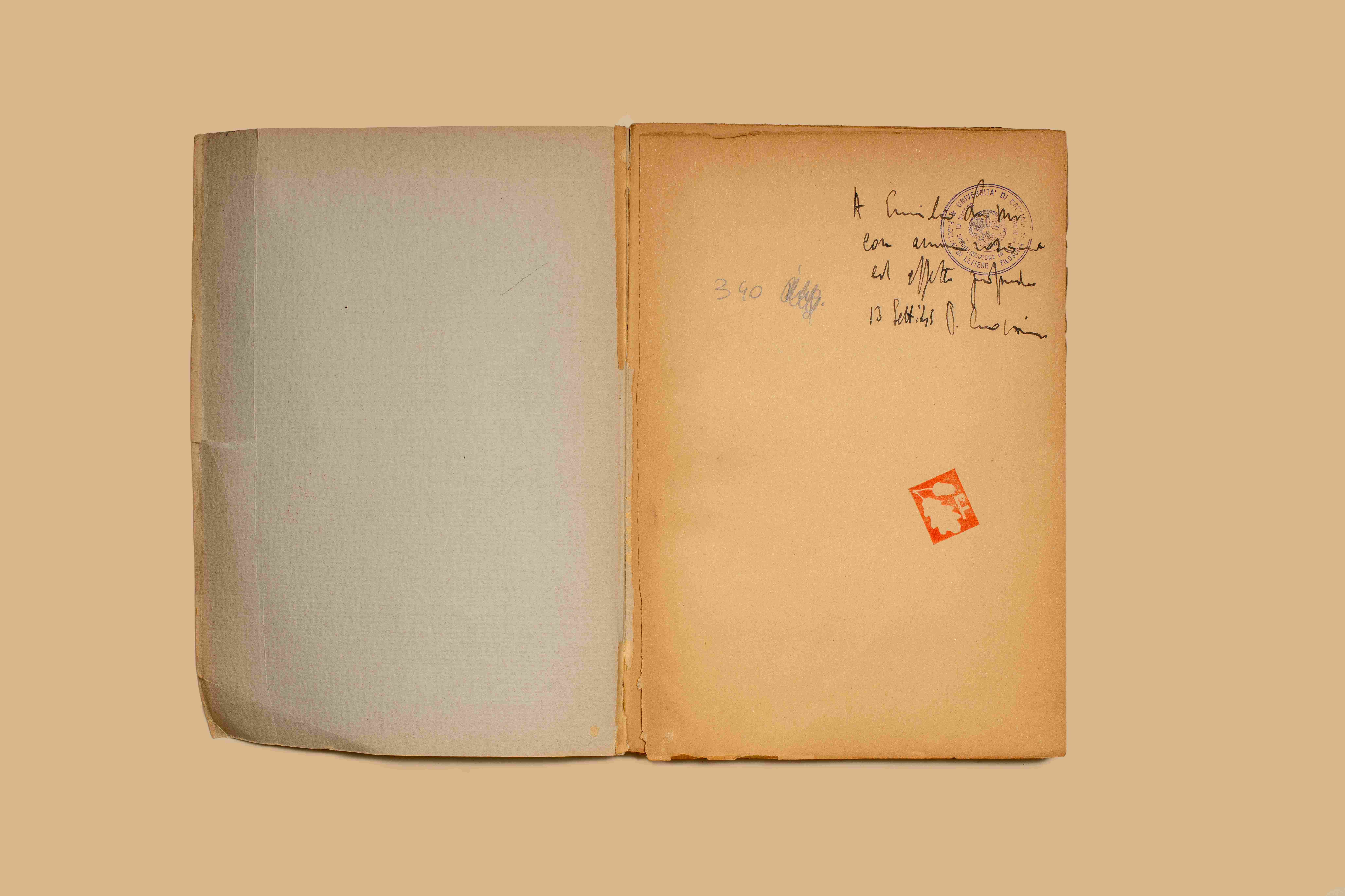 - Dedica ms. prima del front. “A Emilio Lussu con ammirazione ed affetto profondo. 13 sett. 45 P. Crocioni”.
