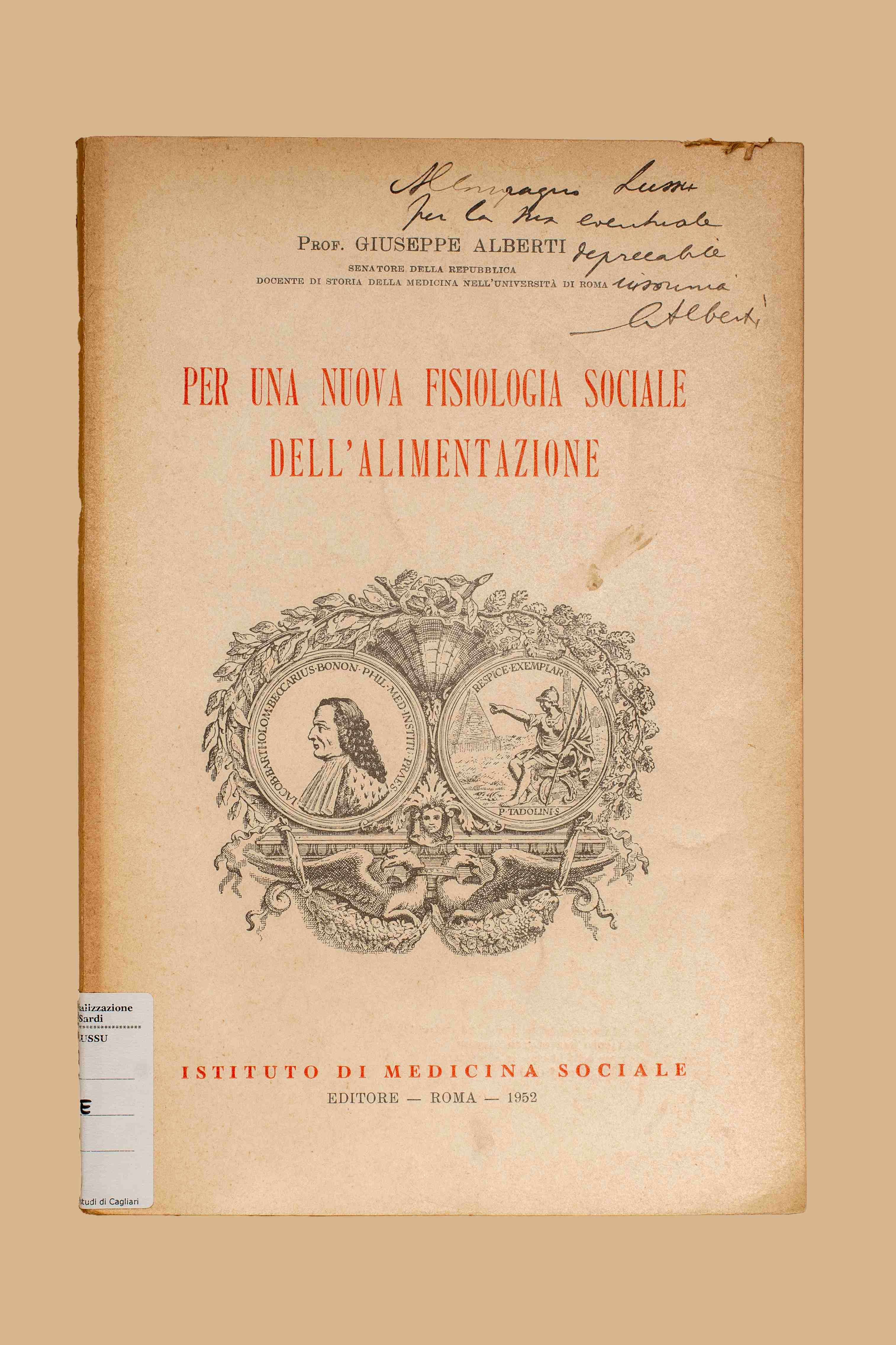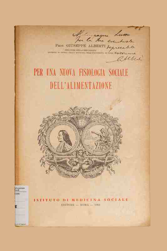 Titolo: Per una nuova fisiologia sociale dell'alimentazione / Giuseppe Alberti. - Roma : Istituto di medicina sociale, 1952. - 148 p. ; 24 cm. - (Collana di studi sui problemi medico-sociali ; 18)