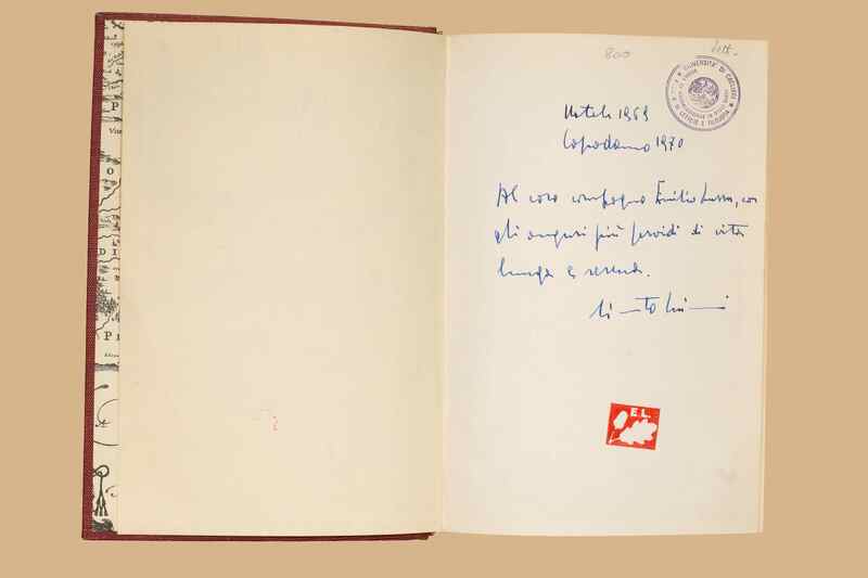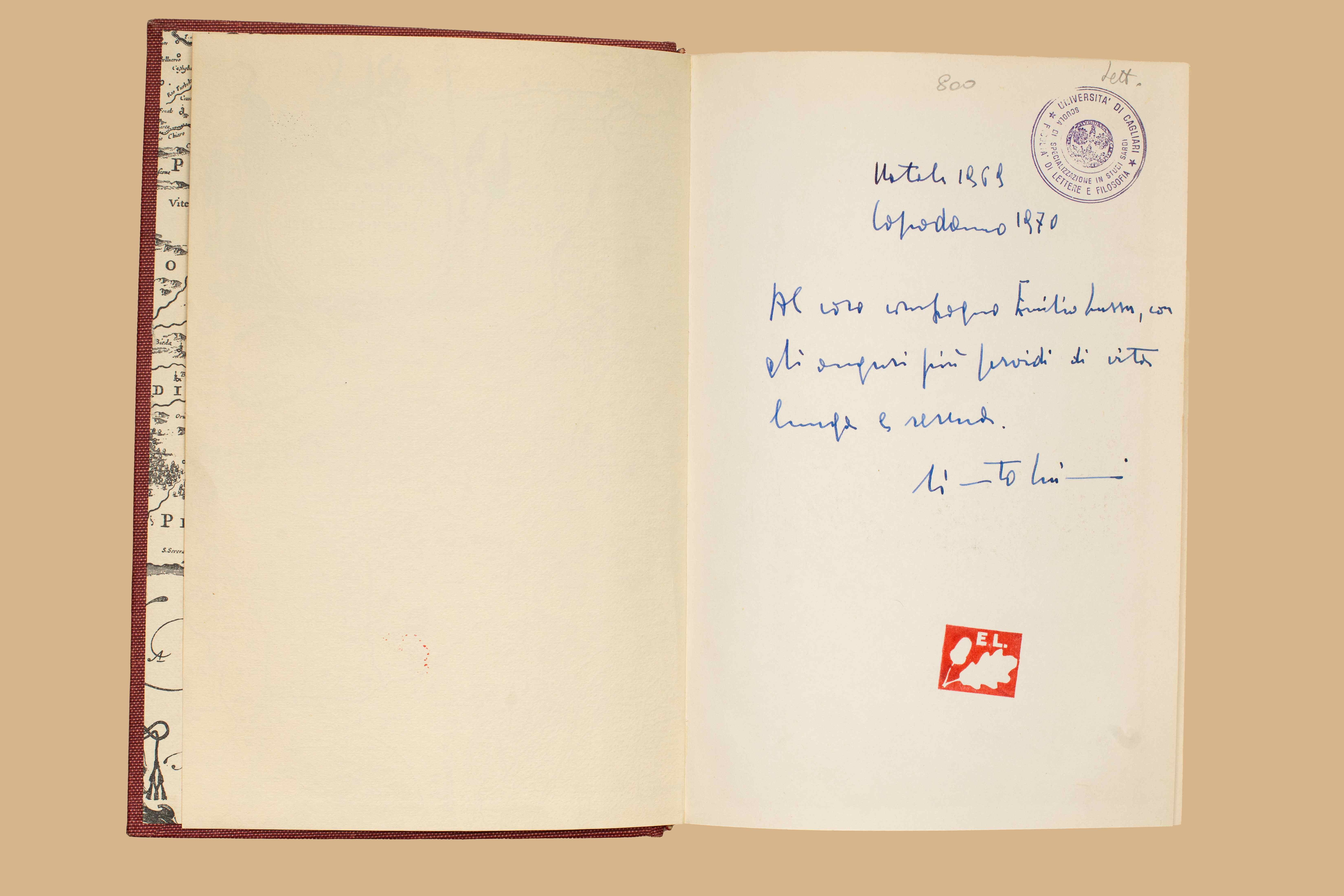 - Nell’occhietto ms. “Natale 1969, capodanno 1970. Al caro compagno Emilio Lussu, con gli auguri più fervidi di vita lunga e serena, Giacinto Minnocci”.