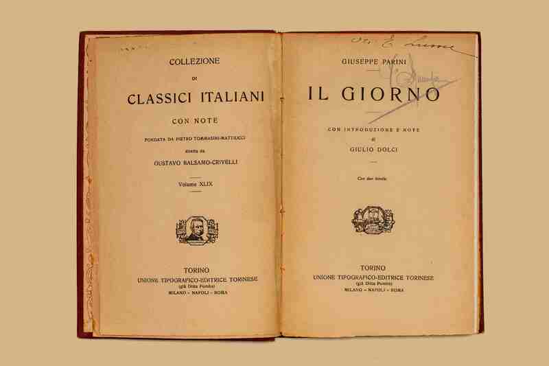 Titolo: Il giorno / Giuseppe Parini ; con introduzione e note di Giulio Dolci. Torino : UTET, 1922. - XXXVIII, 169 p., 2 p. di tav. : ill. ; 18 cm. - (Collezione di classici italiani con note ; 49)