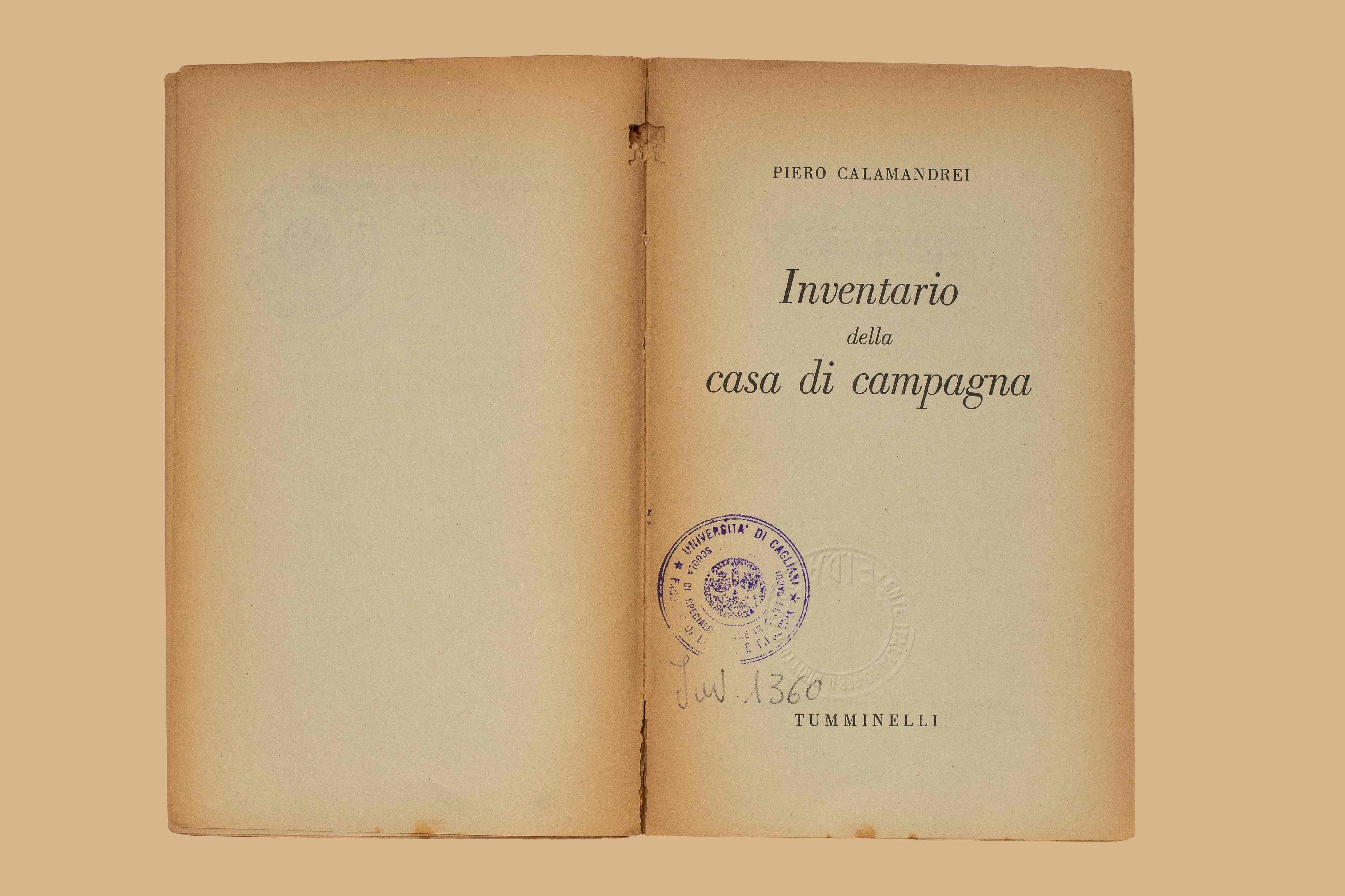 Titolo: Inventario della casa di campagna / Piero Calamandrei. - Roma : Tumminelli, 1945. - 263 p. ; 19 cm. - (Nuova biblioteca italiana ; 23)