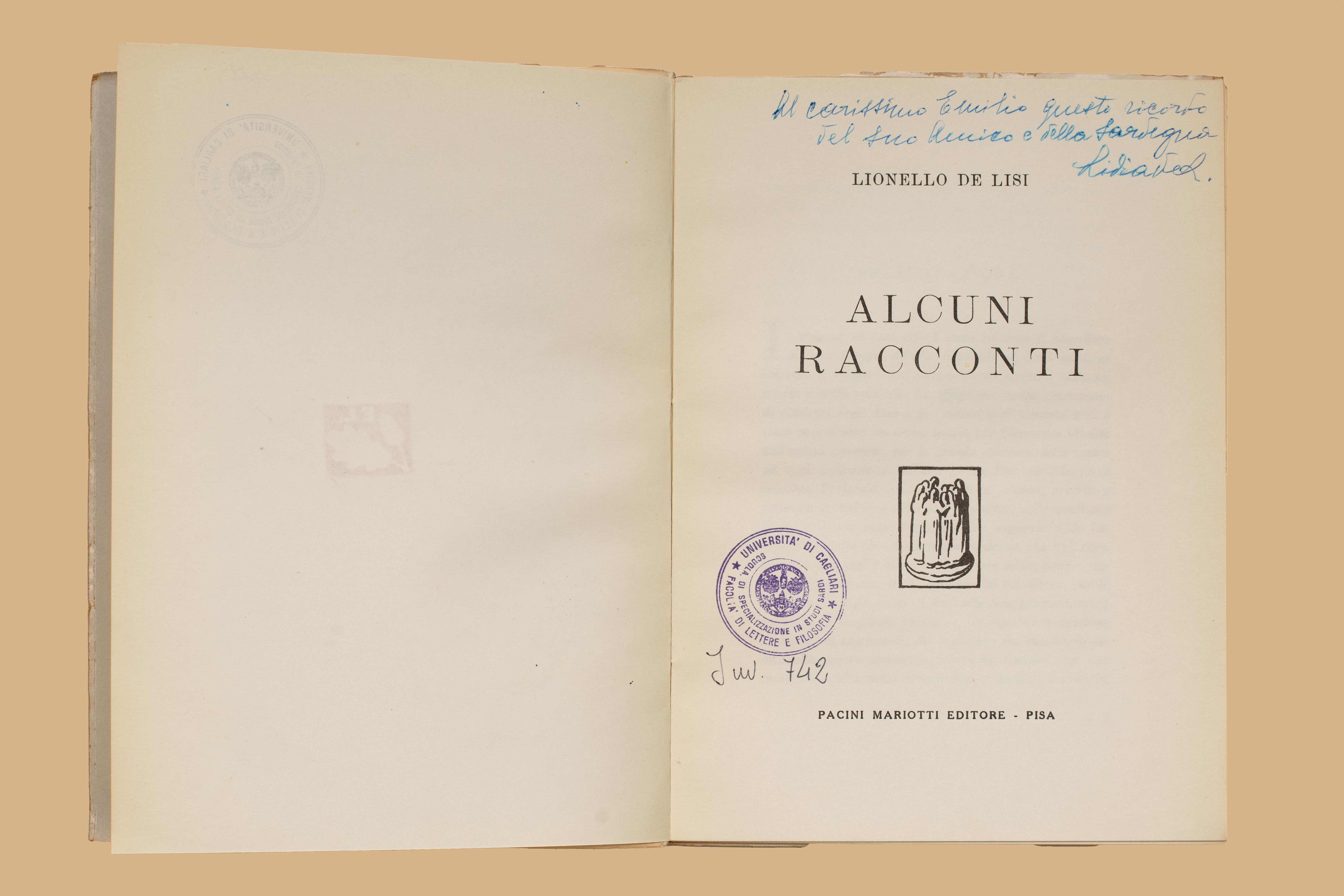 Titolo: Alcuni racconti / Lionello De Lisi. - Pisa : Pacini Mariotti ed., [1958?] . - 87 p. ; 22 cm. - Presentazione di A. Giampalmo .