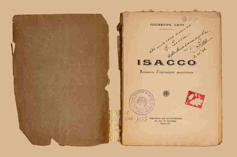 Titolo: Isacco : romanzo di ispirazione mazziniana / Giuseppe Leti. - Paris : Imprimerie des Arts-et-Métiers, 1933. - 260 p. ; 19 cm.