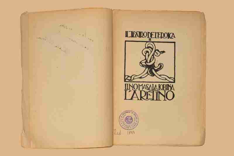 Titolo: L'Aretino / Lino Masala Lobina. - Milano : L'eroica, [1923]. - 138 p. : ill. ; 26 cm. - (Il teatro de L'eroica ; 2). - Illustrazioni di Stanis Dessy