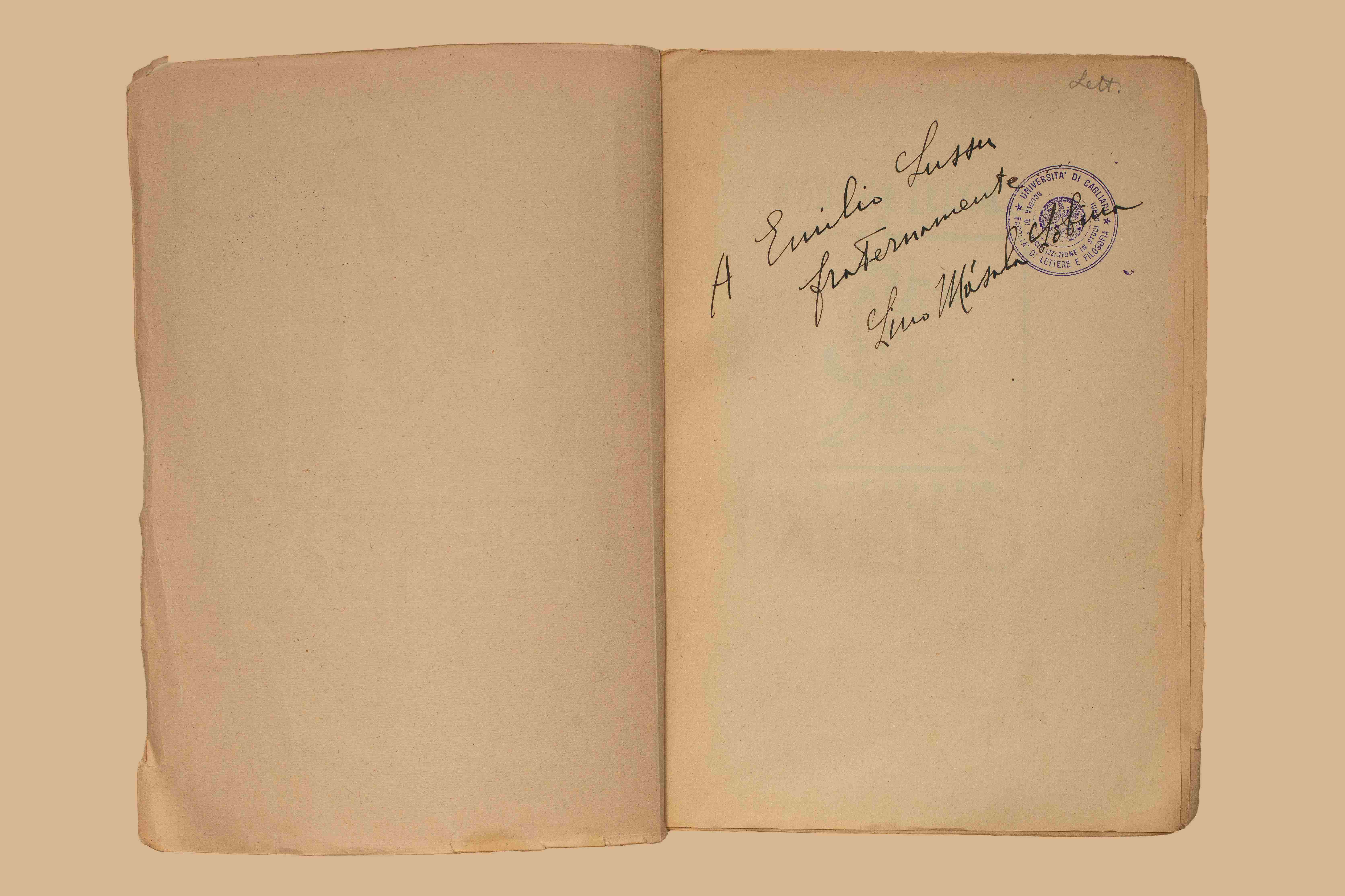 - Dedica ms. nell’occhietto: “A Emilio Lussu, fraternamente. Lino Masala Lobina”.