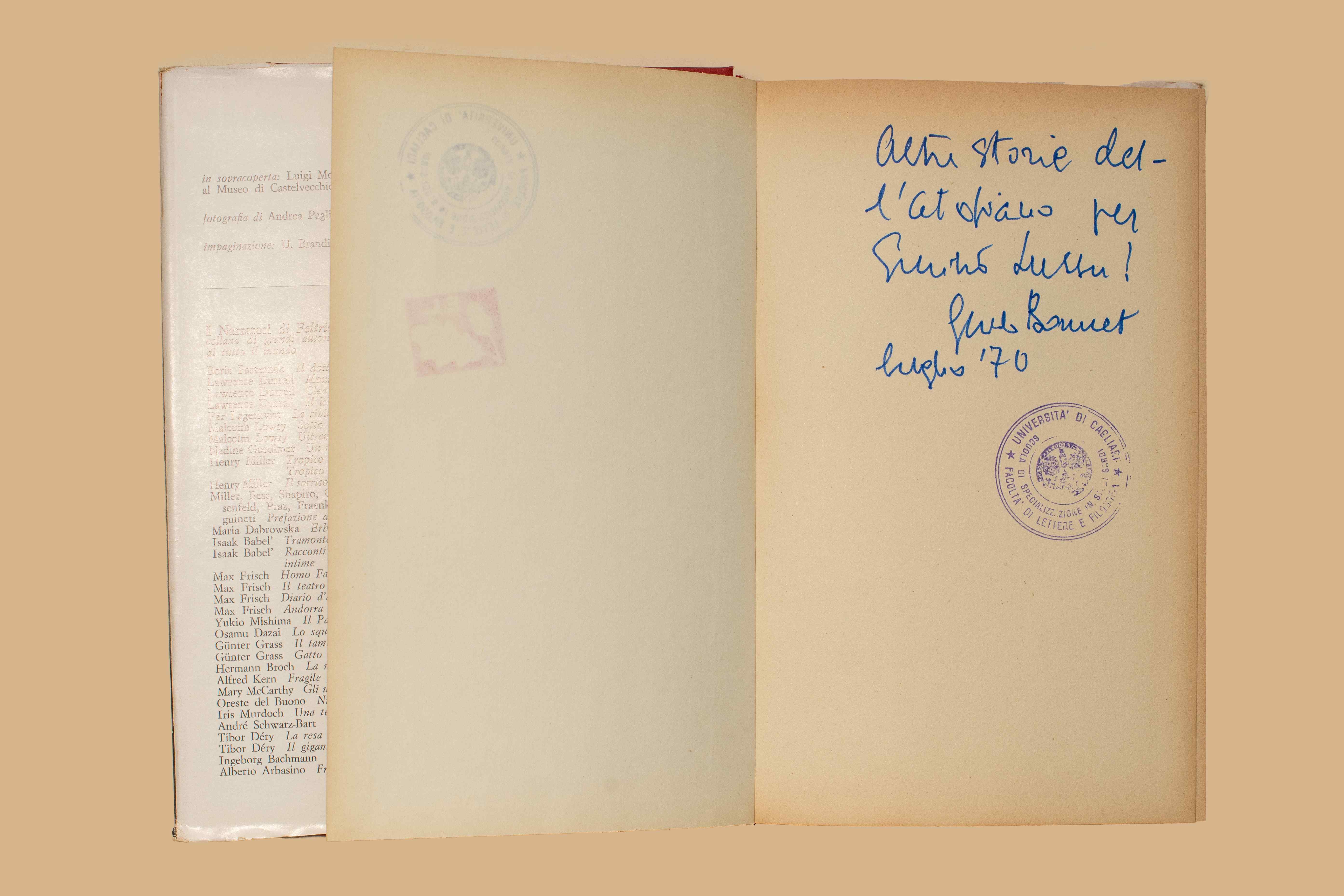- Dedica ms. nell’occhietto: “Altre storie dell’altipiano per Emilio Lussu, Guido Bonnet [?], luglio ’70”.