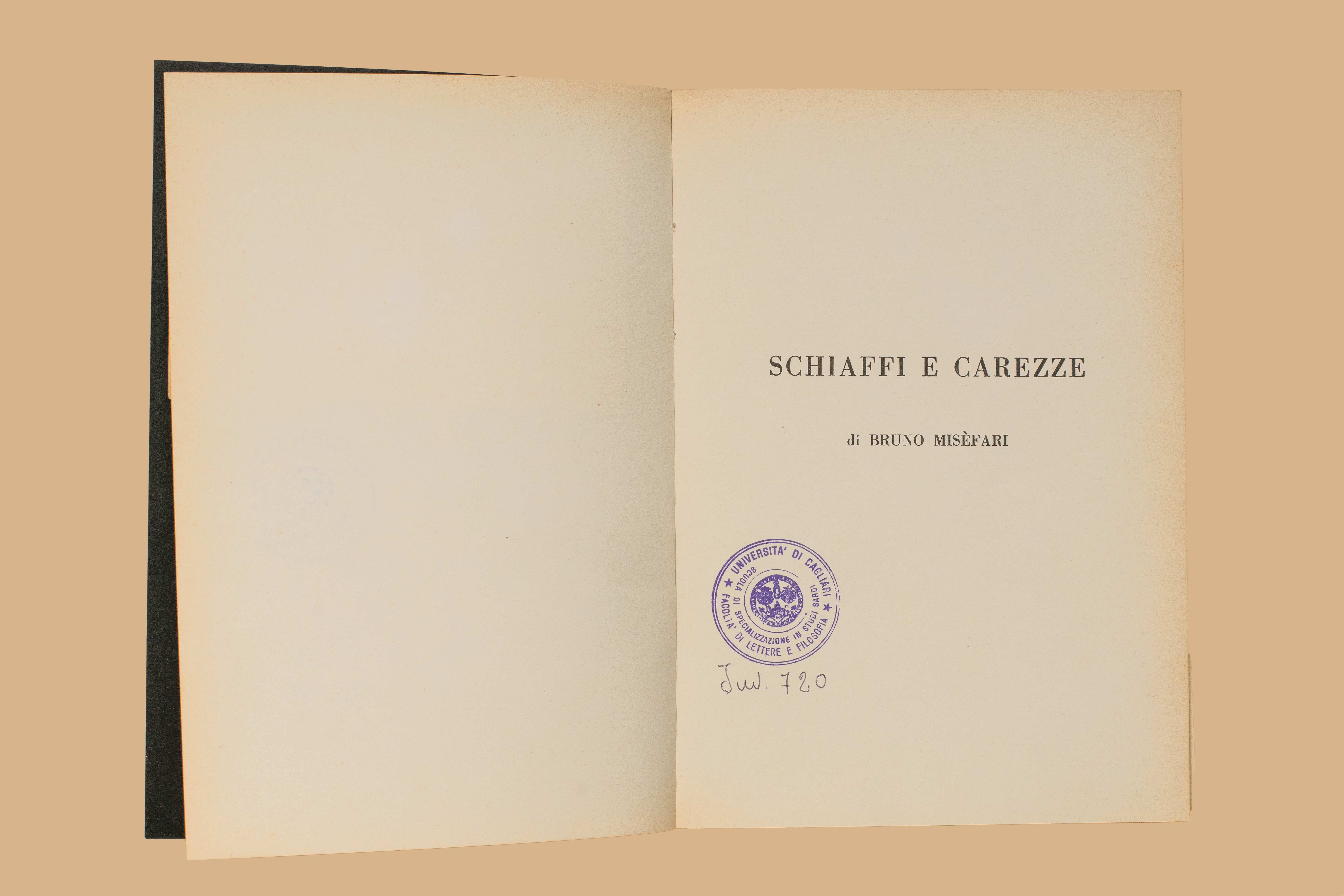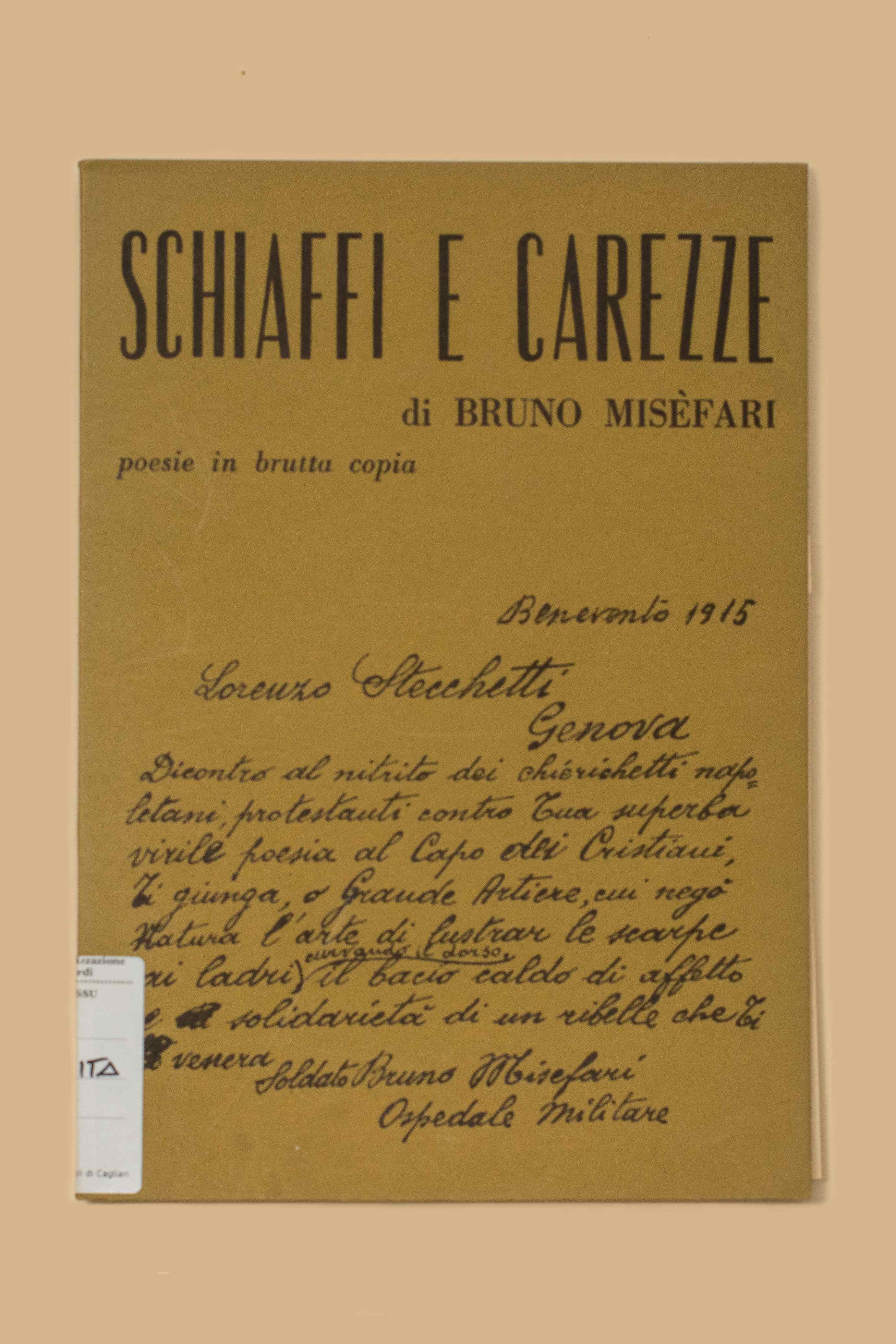 Titolo: Schiaffi e carezze / di Bruno Misefari. - Roma : Morara, 1969. - 122 p. : 1 ritr. : ill. ; 22 cm.