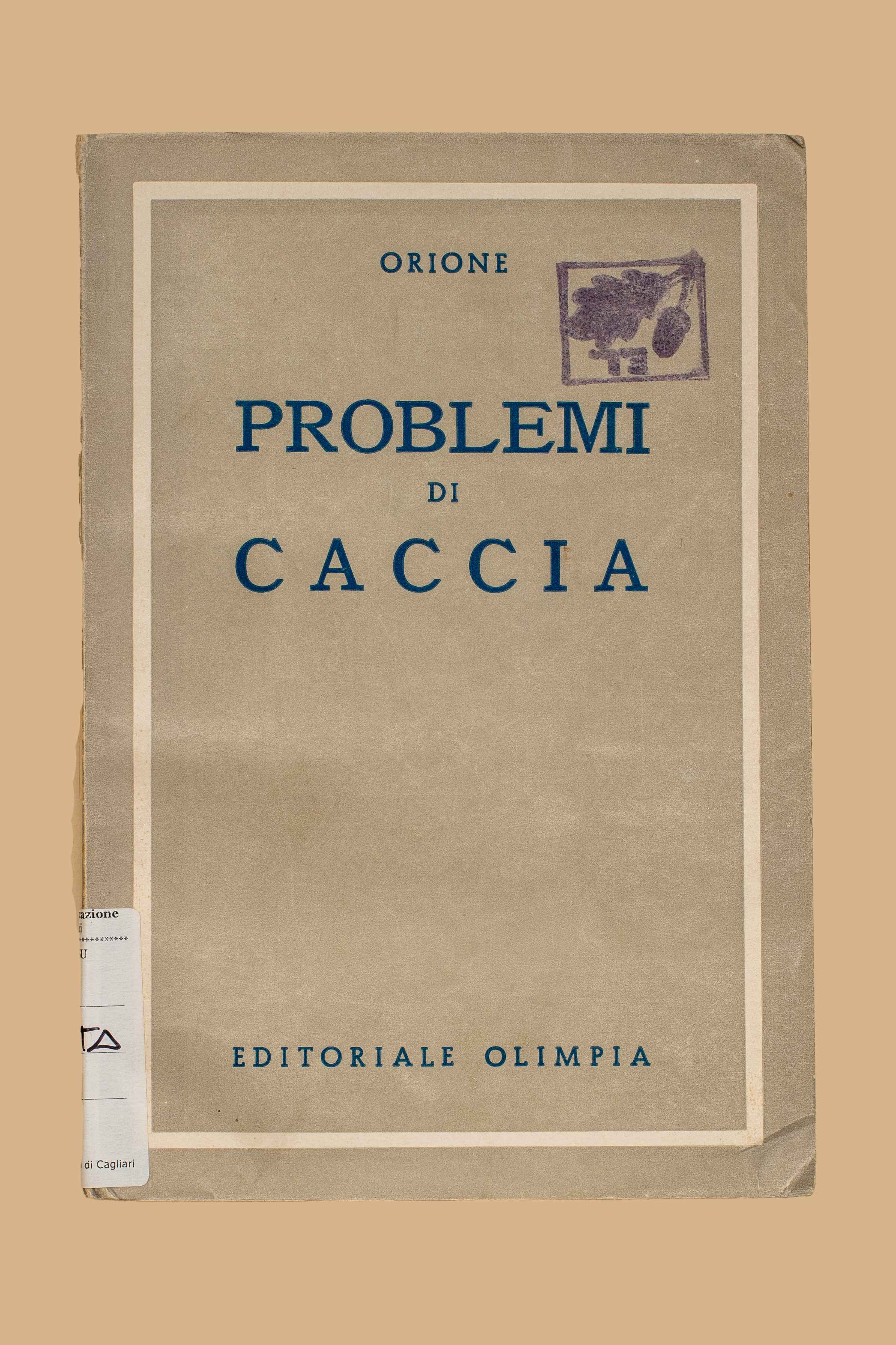 - Problemi di caccia / Orione. - [Firenze] : Ed. Olimpia, 1955 (Tip. Ind. Tip. Fiorentina). - 279 p. ; 19 cm.