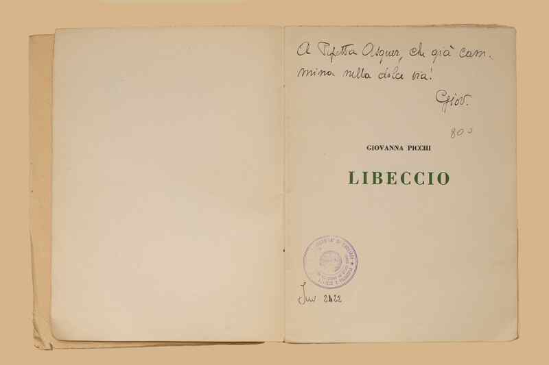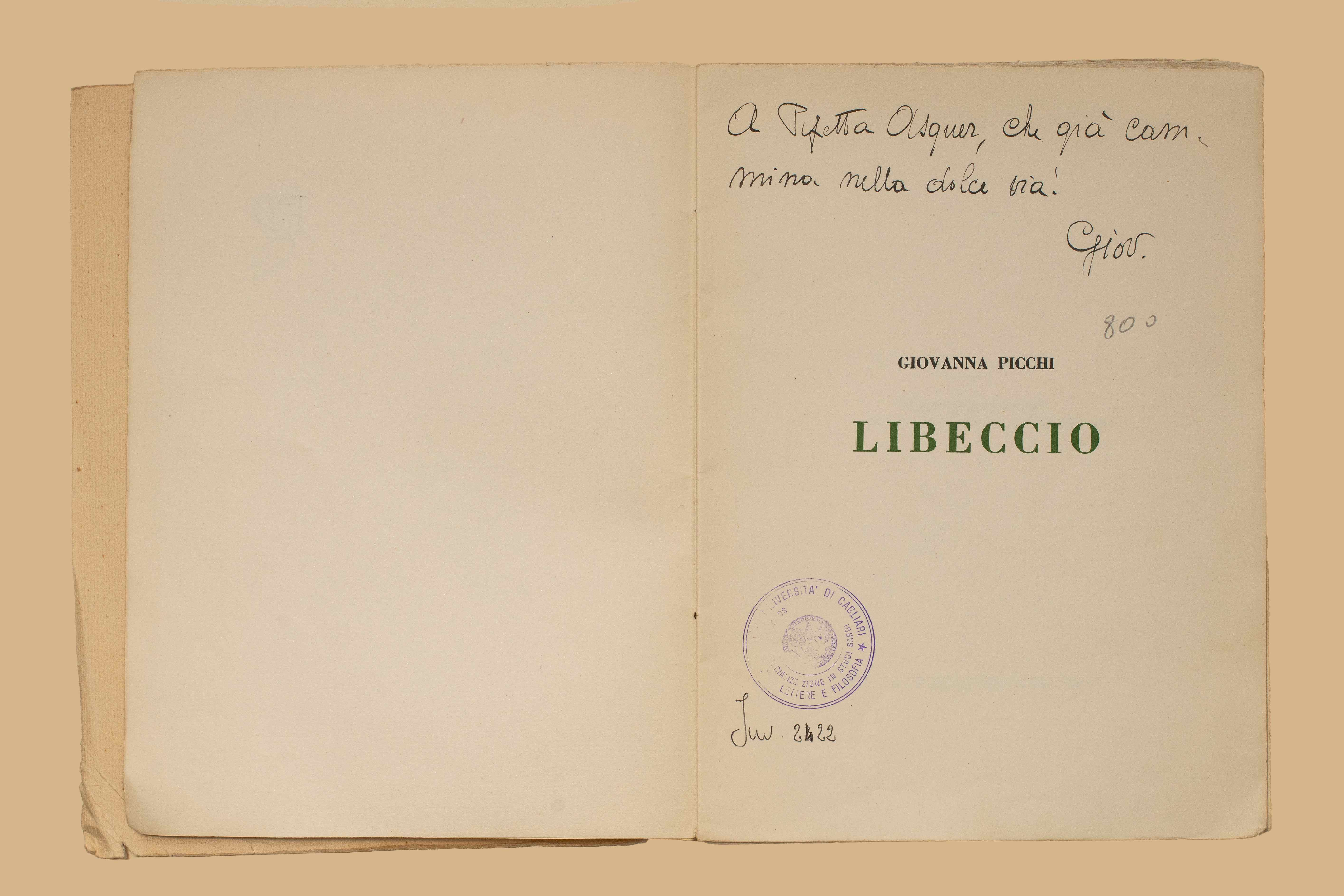 - Dedica ms. sul front. “A Pipetta Asquer che già cammina nella dolce via! Giov.”